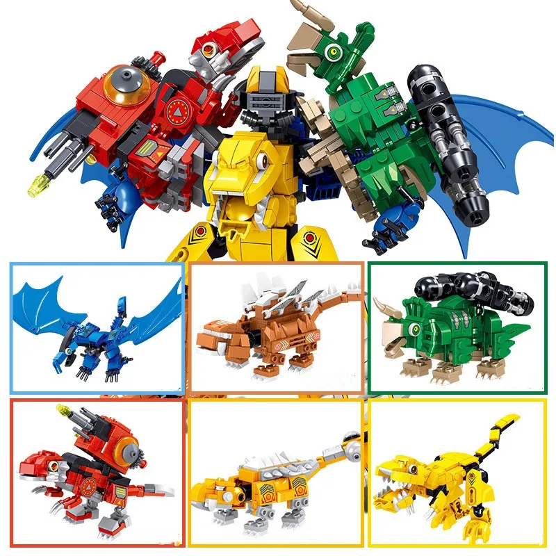 Dinosaur Building Blocks Assembled Toy Model Morphing Robot Puzzle Children's Boy Gift