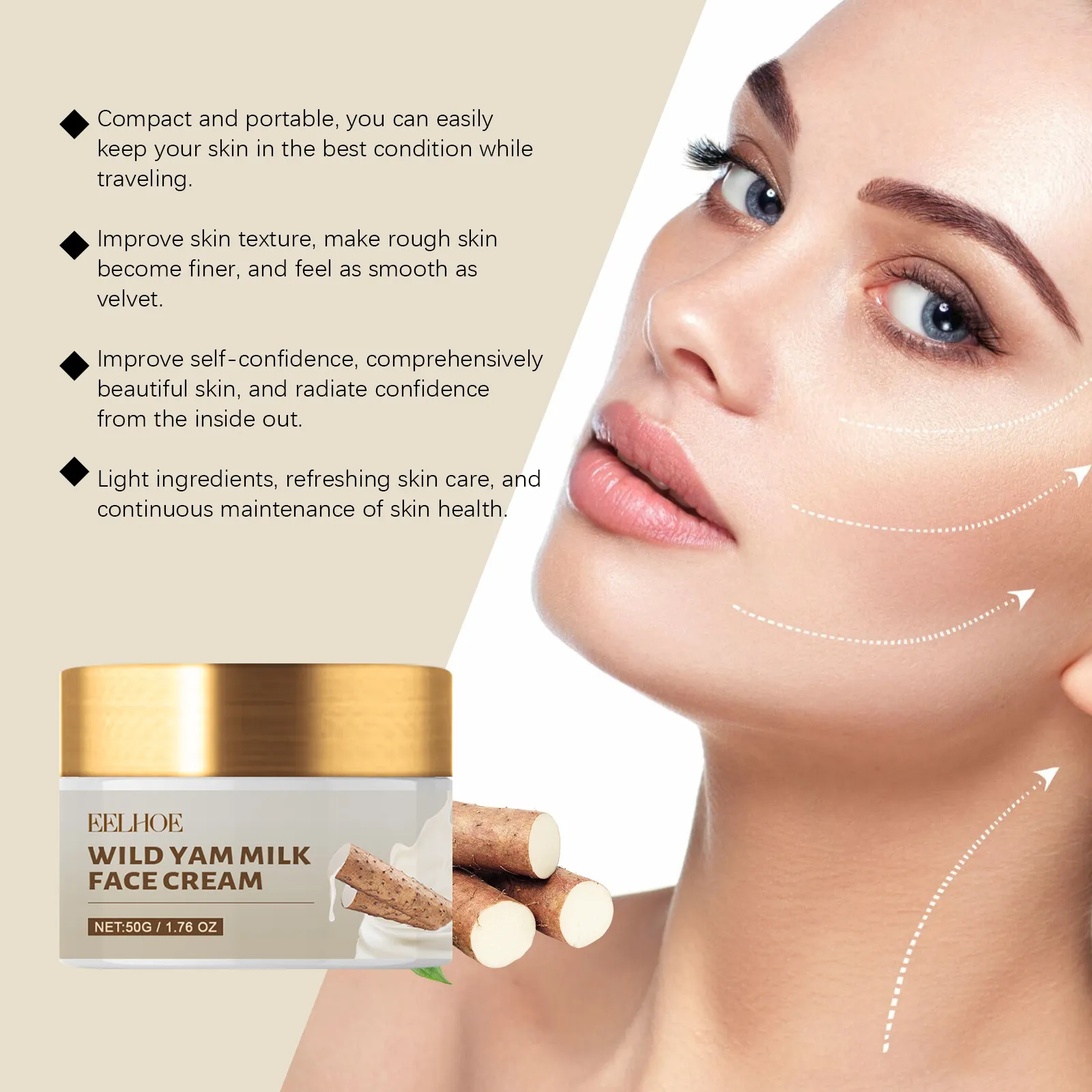 Apply a generous amount of the Dioscorea Japonica Moisturizing Repair Cream to a clean face and neck in the morning and evening. Massage gently in upward motions until fully absorbed. For best results, incorporate it into your daily skincare routine.