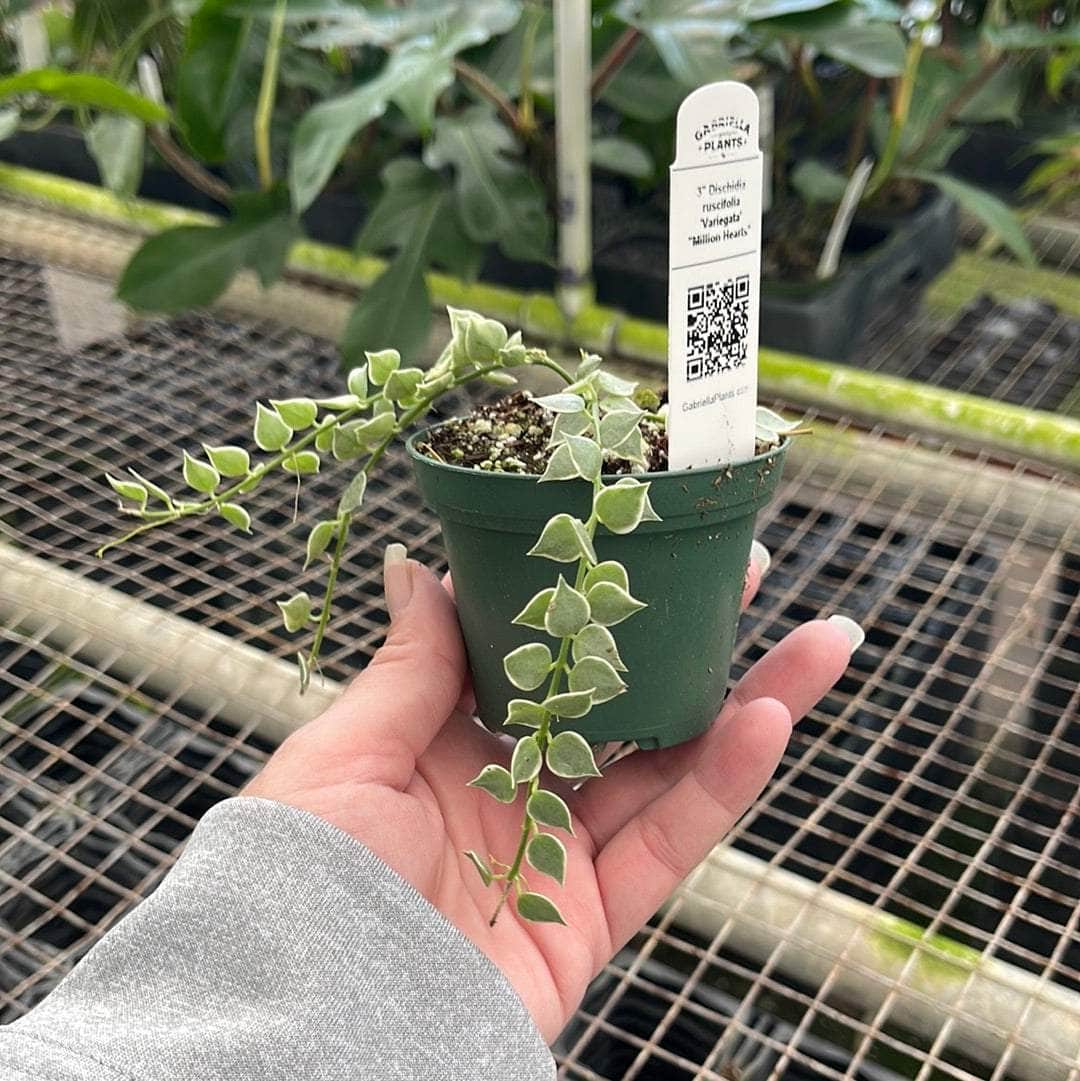 Dischidia ruscifolia 'Variegata' is not just a plant but a living piece of art that brings beauty and joy to any home. Its cascading vines of variegated heart-shaped leaves make it a standout addition to any plant collection. Whether displayed in a hanging basket, adorning a plant shelf, or adding charm to a windowsill, Million Hearts is sure to captivate and delight with its endearing appearance and easy-care requirements. Ideal for both novice and experienced plant enthusiasts, this charming plant is a must-have for anyone looking to add a touch of nature’s elegance to their indoor space.