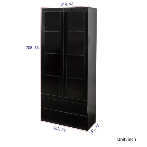 - This display cabinet comes with 4 shelves and 2 draweres, providing ample space for all your necessities and allowing you to view the stored items at a glance.