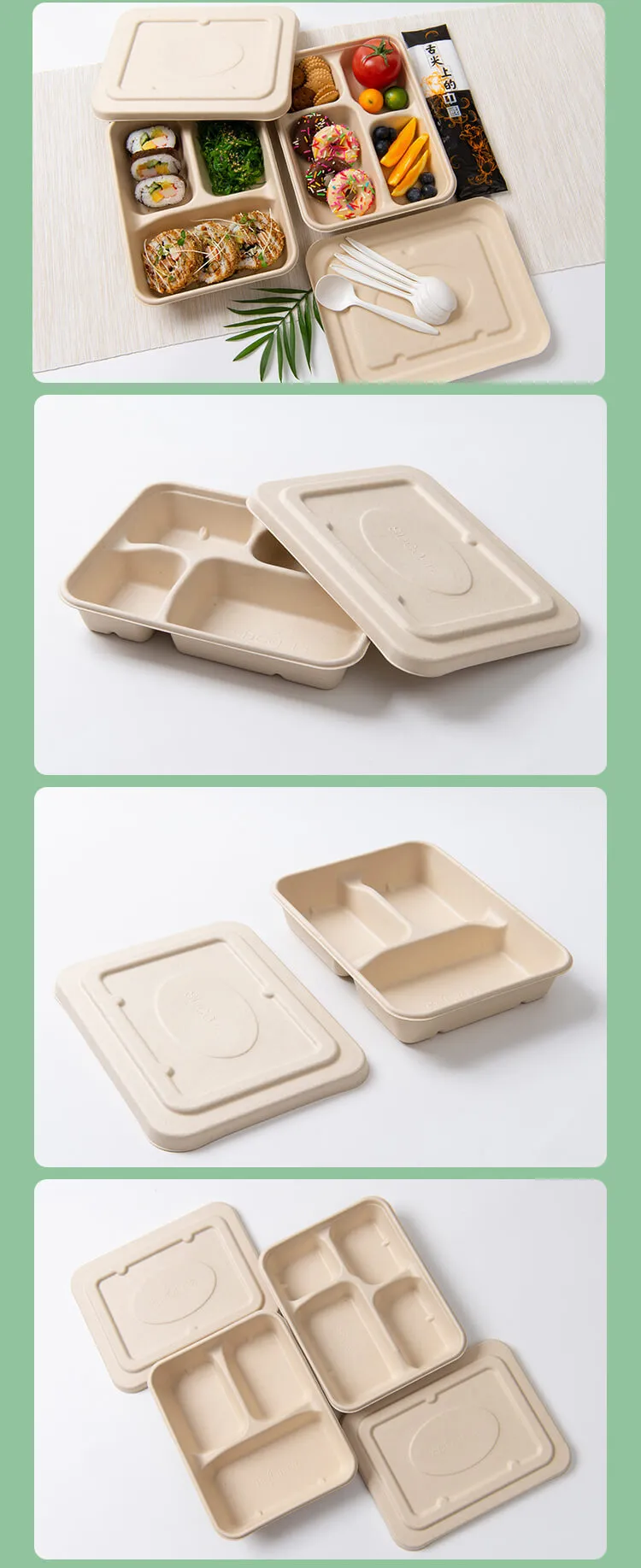 Style 14: Cane Pulp Five Grid Meal Box with Lid