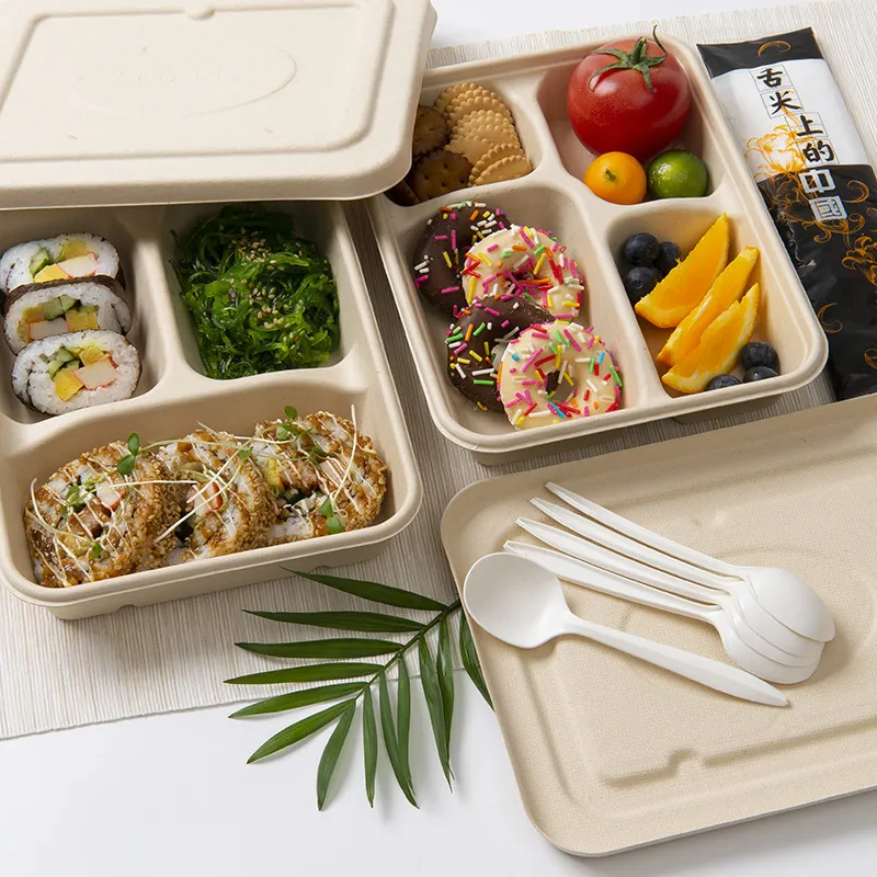 Style 13: Cane Pulp Five Grid Meal Box
