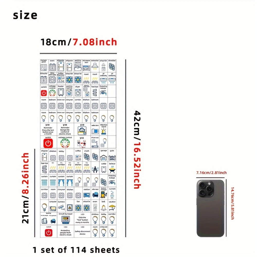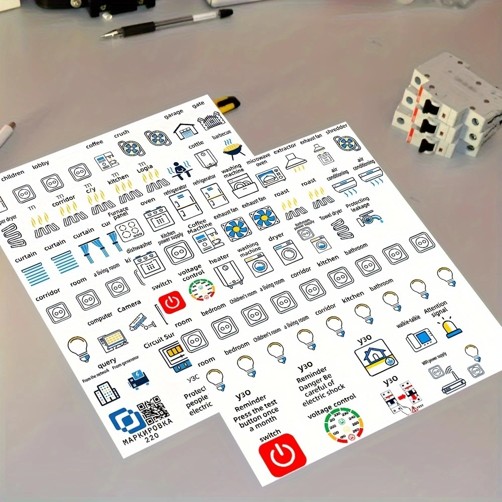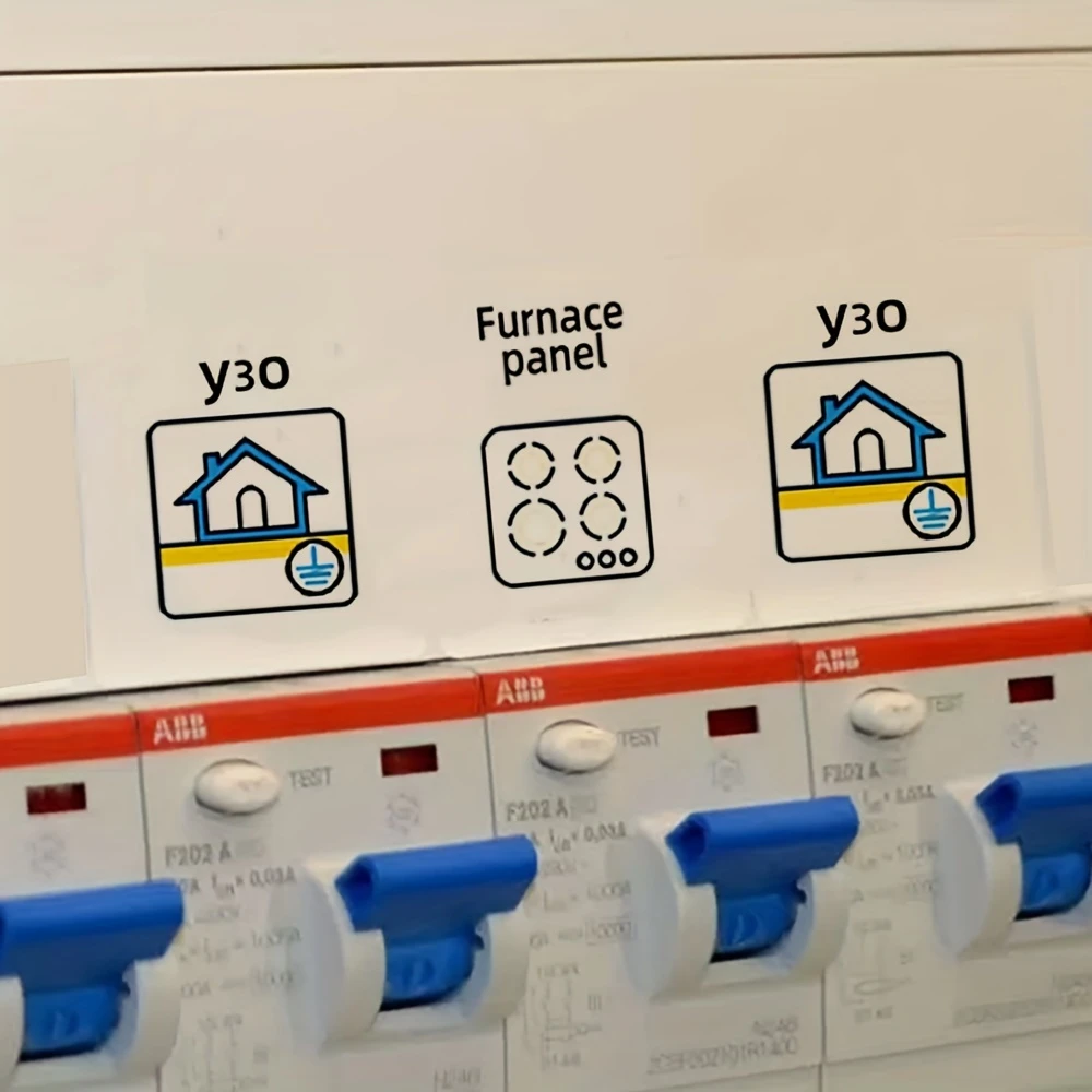 - Place stickers inside door panel or directly next to circuit switches for visibility.