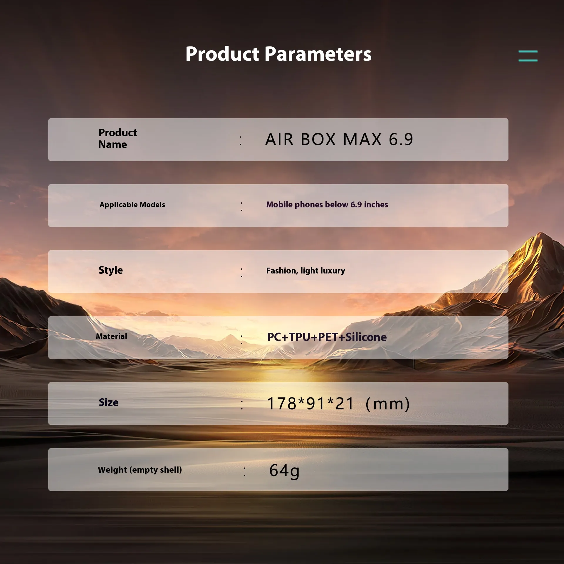 Material: PC PET silicone