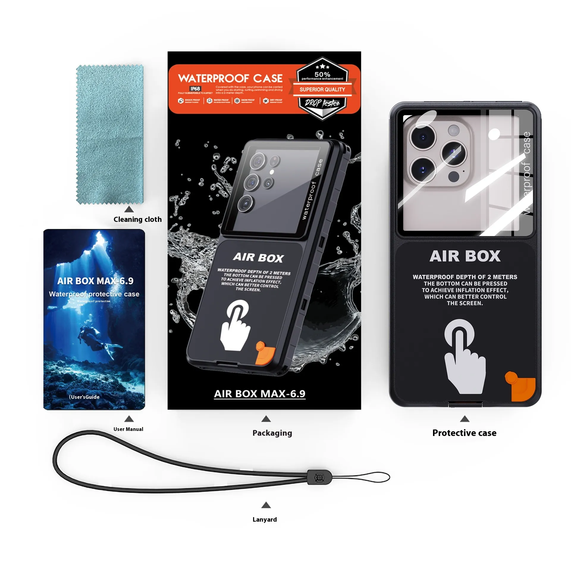 Made from high-quality waterproof materials, the case provides full coverage protection while maintaining touchscreen functionality. Its universal design fits smartphones up to 6.9 inches, ensuring compatibility with a wide range of devices. Lightweight and portable, it’s perfect for outdoor enthusiasts and adventure seekers.