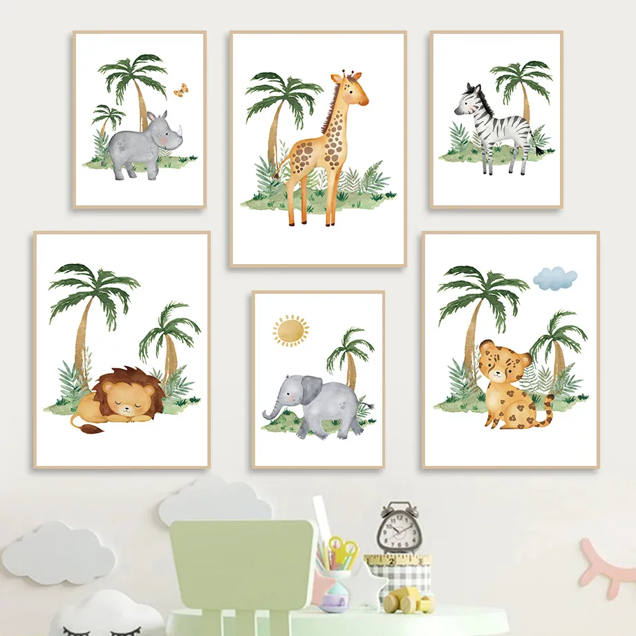 Transform your nursery walls into a lush jungle scene by creating DIY wall murals or hanging up animal print art. If you’re feeling artistic, you can paint a beautiful jungle landscape directly on the walls, filled with trees, vines, and adorable jungle animals. For a simpler option, opt for removable wall decals featuring jungle animals like monkeys, zebras, and parrots.