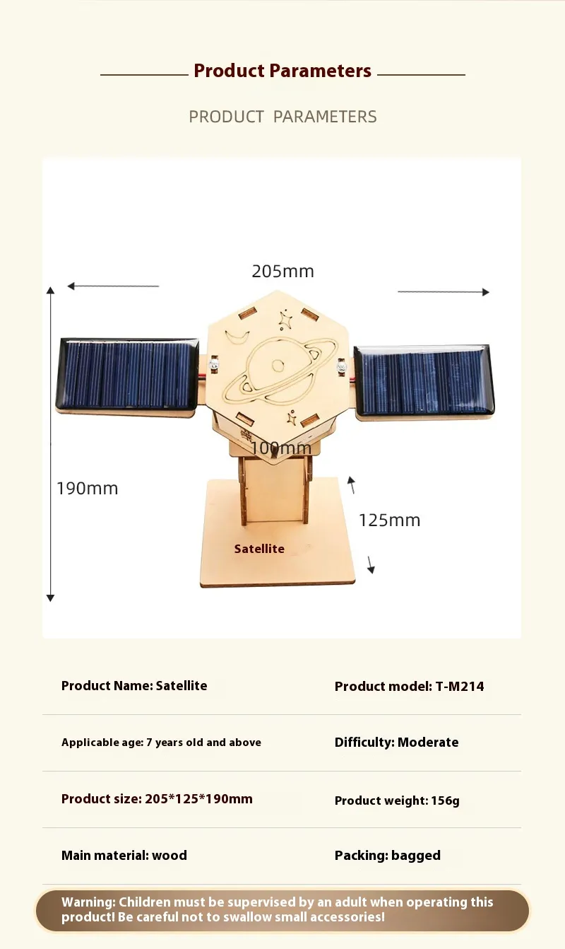 The DIY Technology Small Production STEM Experimental Teaching Aids Space Model Artificial Satellite Educational Toy Kit is a must-have for any young learner interested in space, technology, or renewable energy. With its solar-powered design and DIY assembly, it provides a hands-on, interactive learning experience that promotes STEM education, environmental awareness, and creative problem-solving. Encourage the development of future engineers, scientists, and inventors with this exciting and educational toy kit.