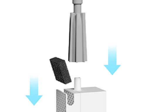 - Insert the foam filter and the silicone pipe onto the water pump.
