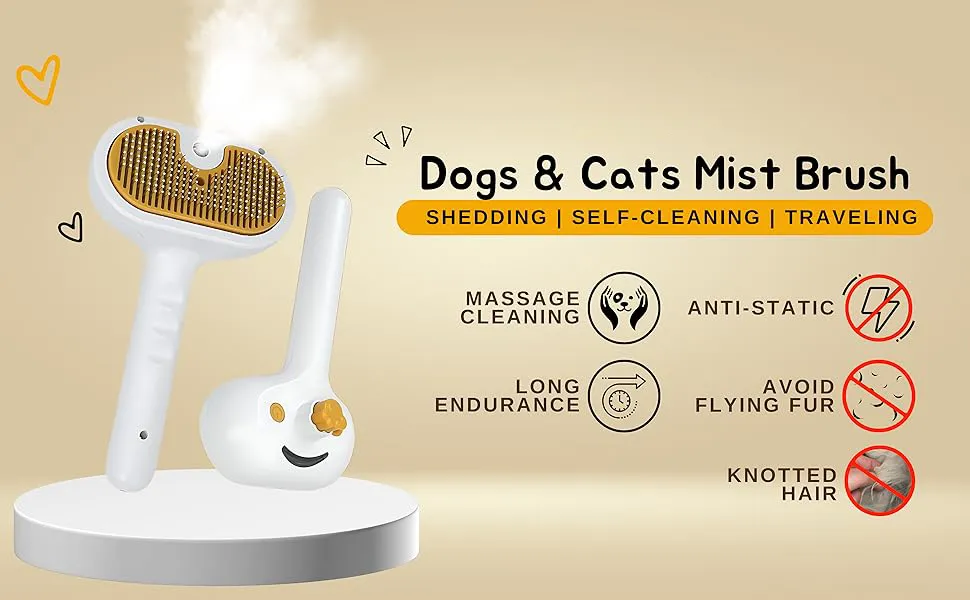 Say goodbye to the struggle of grooming your shedding dog! We know how frustrating it can be when your furry friend dislikes brushing or suffers from painful tangles and knots. That’s why we designed the 3-in-1 Steam Brush — a perfect blend of gentle brushing combined with a soothing cooling mist that softens your dog's coat and makes detangling effortless. It’s like giving your dog a relaxing spa day right in the comfort of your home, without the mess. When grooming is done, simply press a button to release the fur — no more painful pulling or plucking by hand. Plus, if baths aren’t your dog’s favorite, don’t worry! With regular use, the Chewie Steam Brush helps keep their coat clean, fresh, and wonderfully scented, so you can extend the time between baths and reduce grooming stress for both you and your pet.