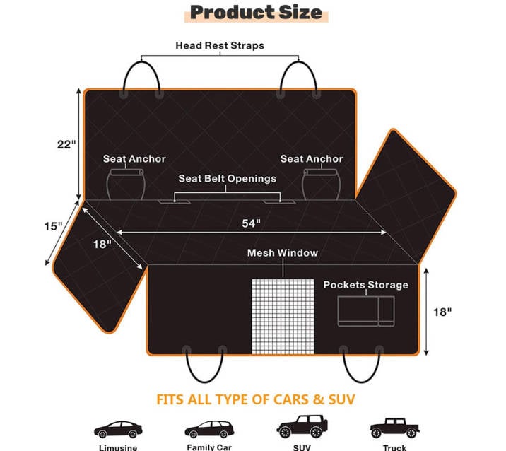 Waterproof Design: Protects your car’s rear seats from spills, stains, and pet accidents, ensuring easy cleanup and maintaining your vehicle’s cleanliness.