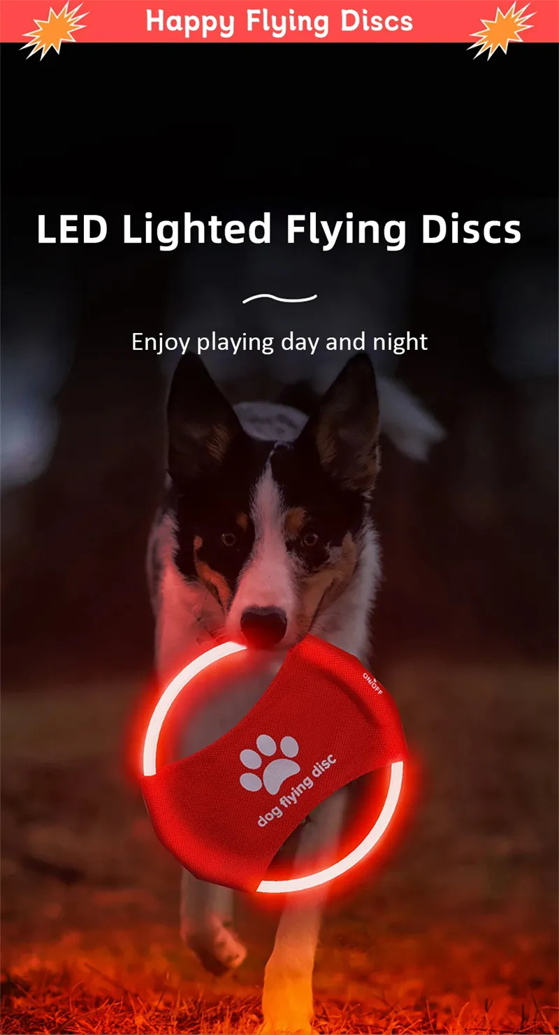 The Dog Flying Discs Light Glowing LED is perfect for dogs of all sizes who love to fetch and play outdoors. Whether your dog is a large, energetic breed or a small, playful pup, this LED frisbee will keep them engaged and excited for more. The lightweight design ensures that dogs of all ages and energy levels can enjoy the disc without tiring quickly.