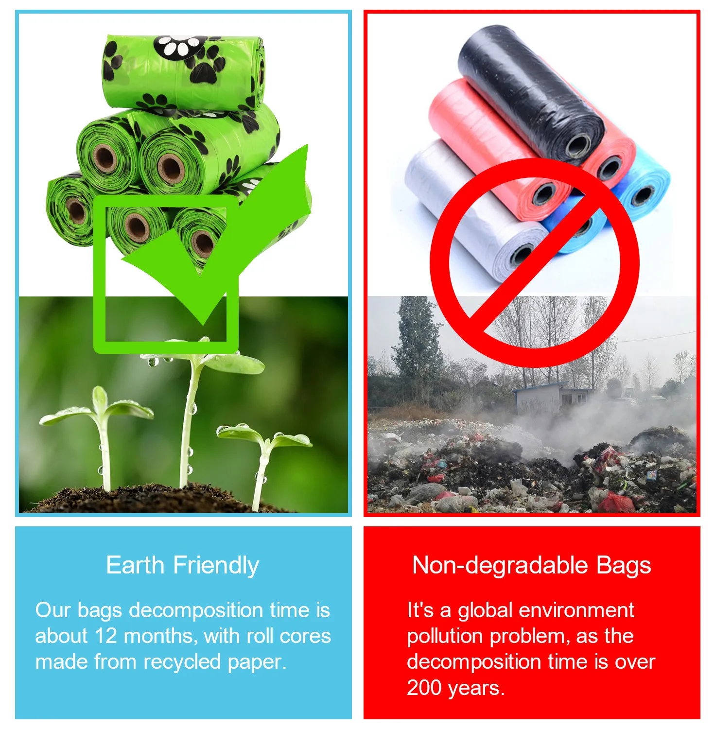 The biodegradable material used in these Dog Poop Bags ensures that you’re making an environmentally-conscious choice. Unlike conventional plastic bags that take hundreds of years to decompose, these bags break down much faster, reducing landfill waste and helping to preserve the environment.
