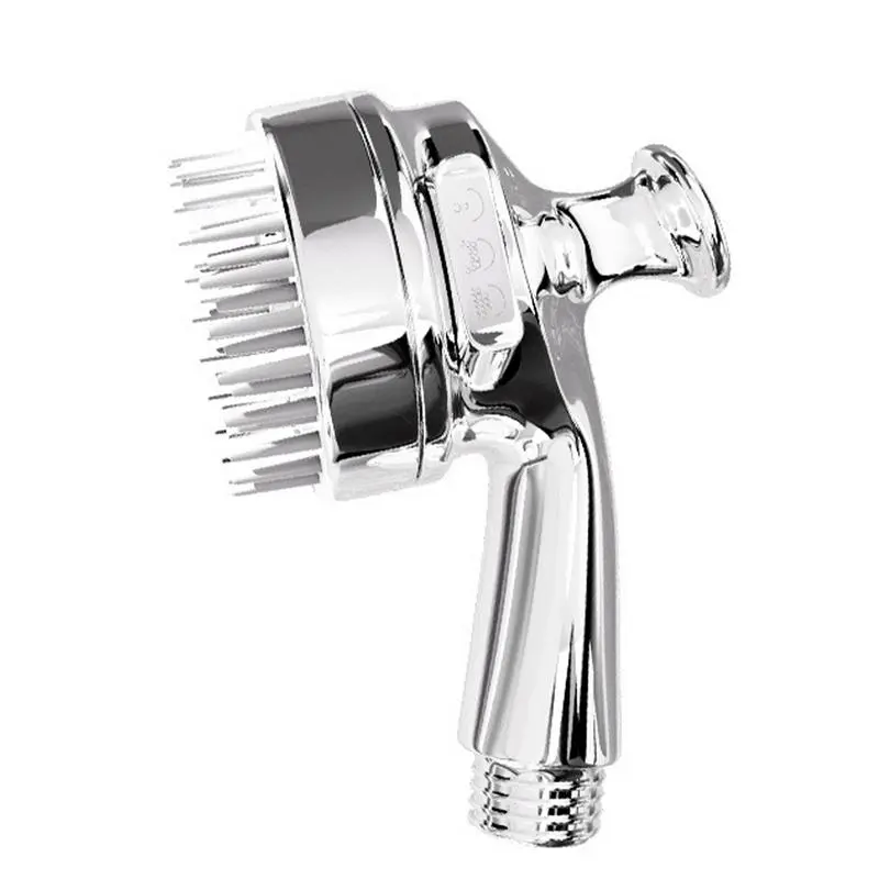 Combines shower spray and grooming brush into a single tool, allowing simultaneous washing and massaging for a faster, more effective clean.