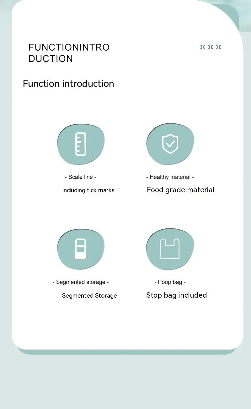1. 3-in-1 Design: This pet water bottle features a built-in 600ml water, 100g food container, and waste bag compartment, providing