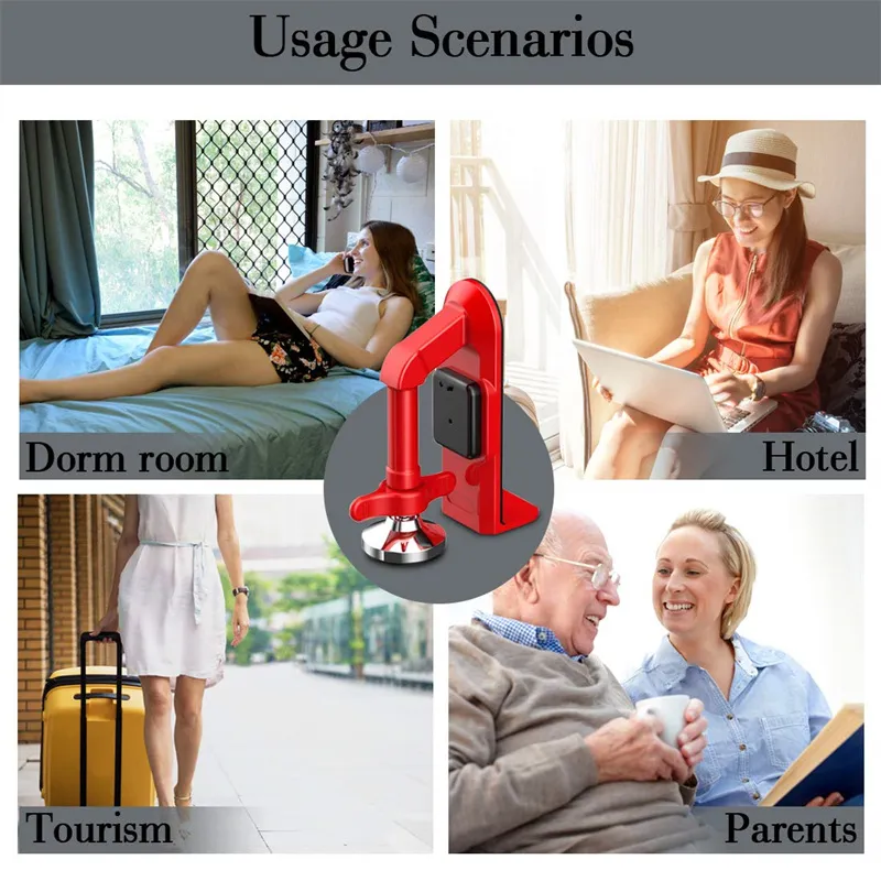 The Hardest Material -After years of research, we have produced this product. Small but very hard material. Don't worry about your safety, it can firmly hold the door. In case of emergency, you can easily remove the door brace with an upward motion.
