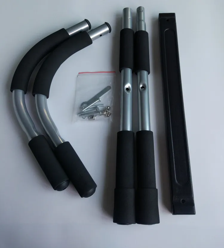 1. Using clever mechanics principles, the horizontal bar is fixed by the weight of the body, without any modification to the door frame, nor
