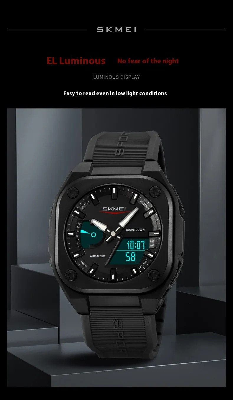 Built with high-quality materials, the watch features a luminous display that ensures easy time reading in low-light or nighttime conditions. Its waterproof construction allows it to withstand rain, splashes, and outdoor activities, offering dependable performance regardless of the environment. The multifunctional design includes dual time displays, alarms, stopwatch, and calendar functions, providing all the features you need in one convenient device.