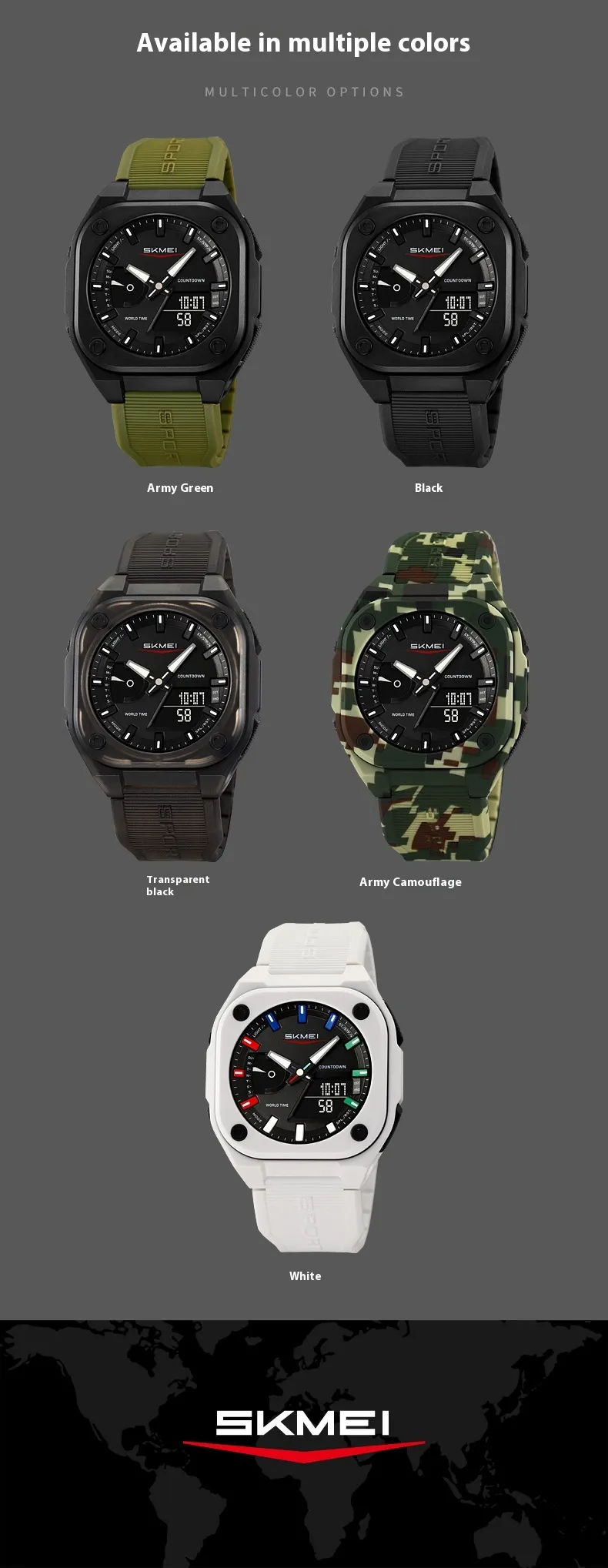Stay prepared for any adventure with the Double Inserts Luminous Waterproof Multifunctional Electronic Watch, designed for New Zealand outdoor enthusiasts who need a reliable, versatile, and stylish timepiece. This watch combines functionality, durability, and modern design, making it perfect for sports, hiking, camping, or everyday wear.