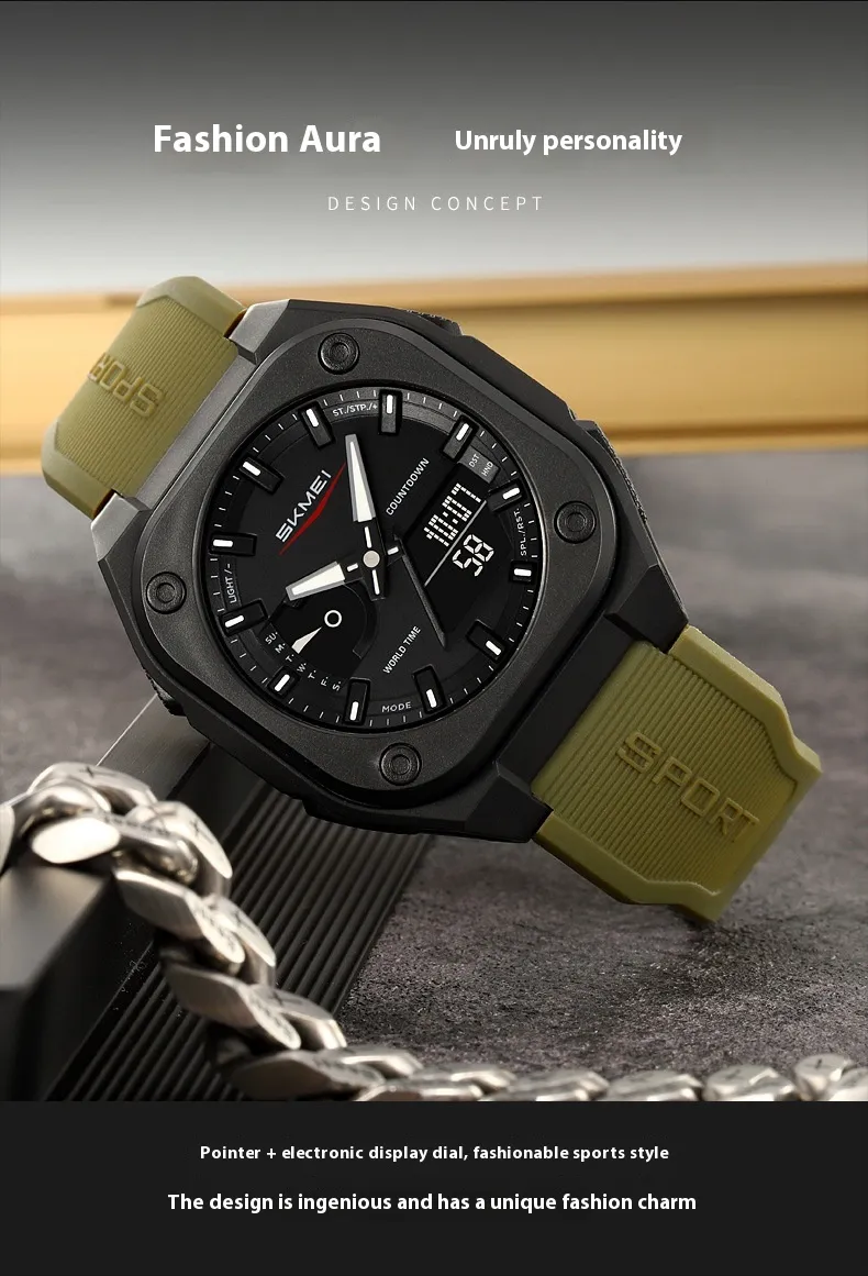The Double Inserts Electronic Watch is lightweight and comfortable, ensuring long-term wear without irritation. Its sporty and rugged design pairs perfectly with outdoor gear, casual wear, or activewear, making it a versatile accessory for both adventure seekers and daily commuters.