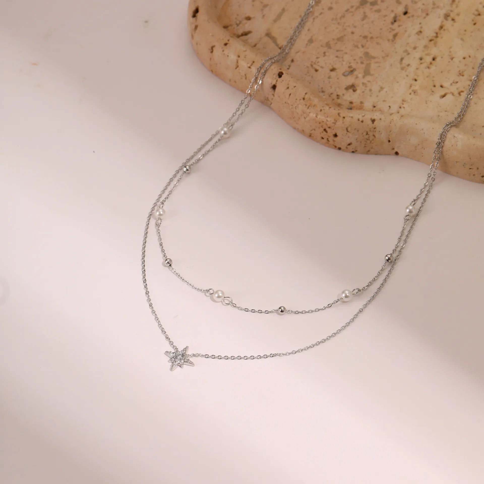 Add sparkle and sophistication to your look with the Double-layer Six-pointed Star Rhinestone Pearl Stainless Steel Necklace, designed for New Zealand women who love trendy, high-quality, and stylish jewelry. This piece perfectly blends INS-inspired modern design with luxurious detailing.
