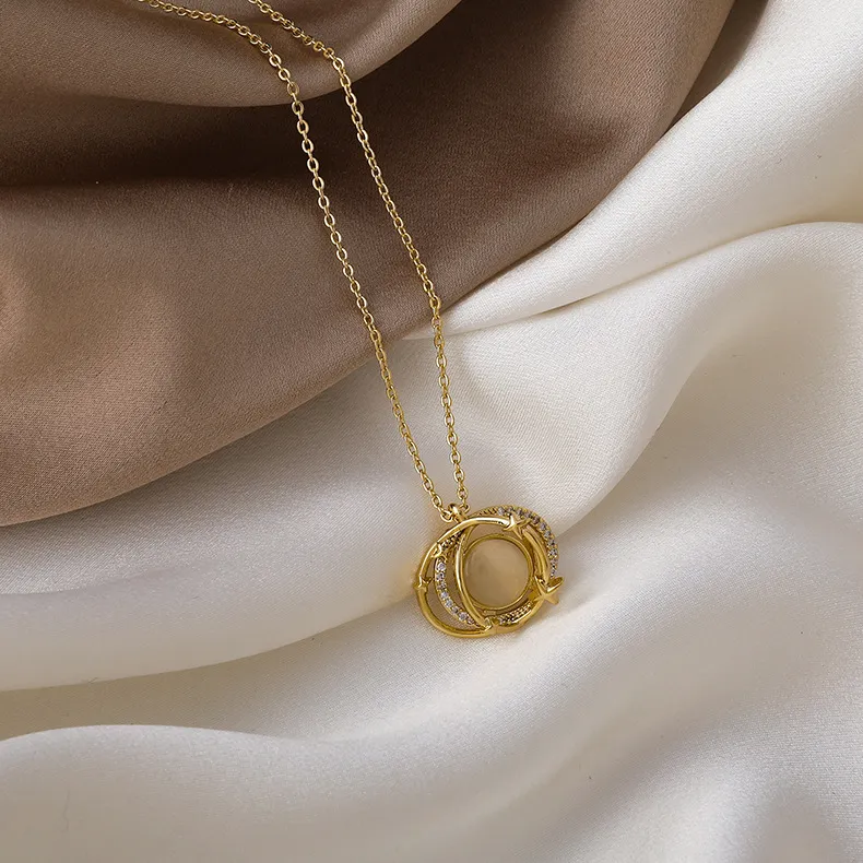 Double round overlapping opal planet necklace women