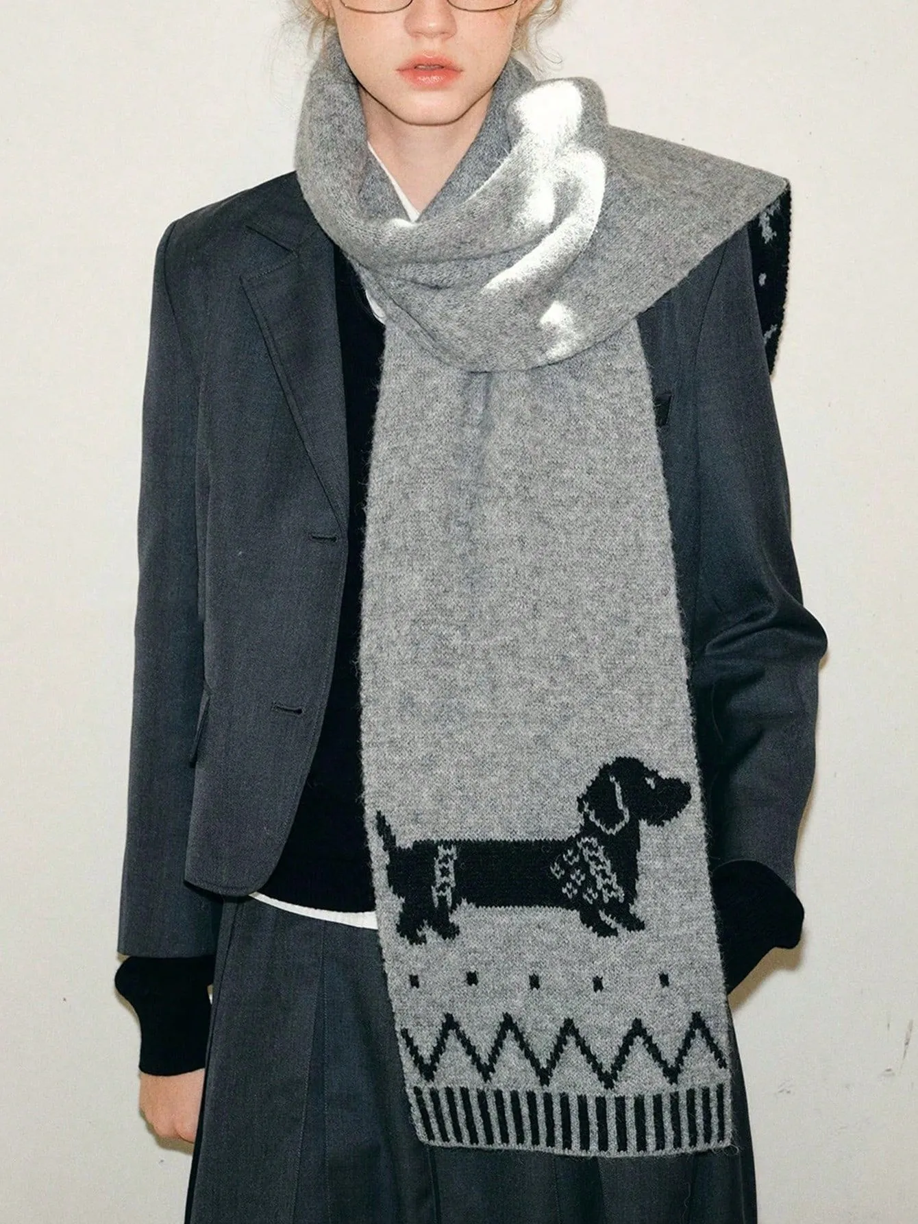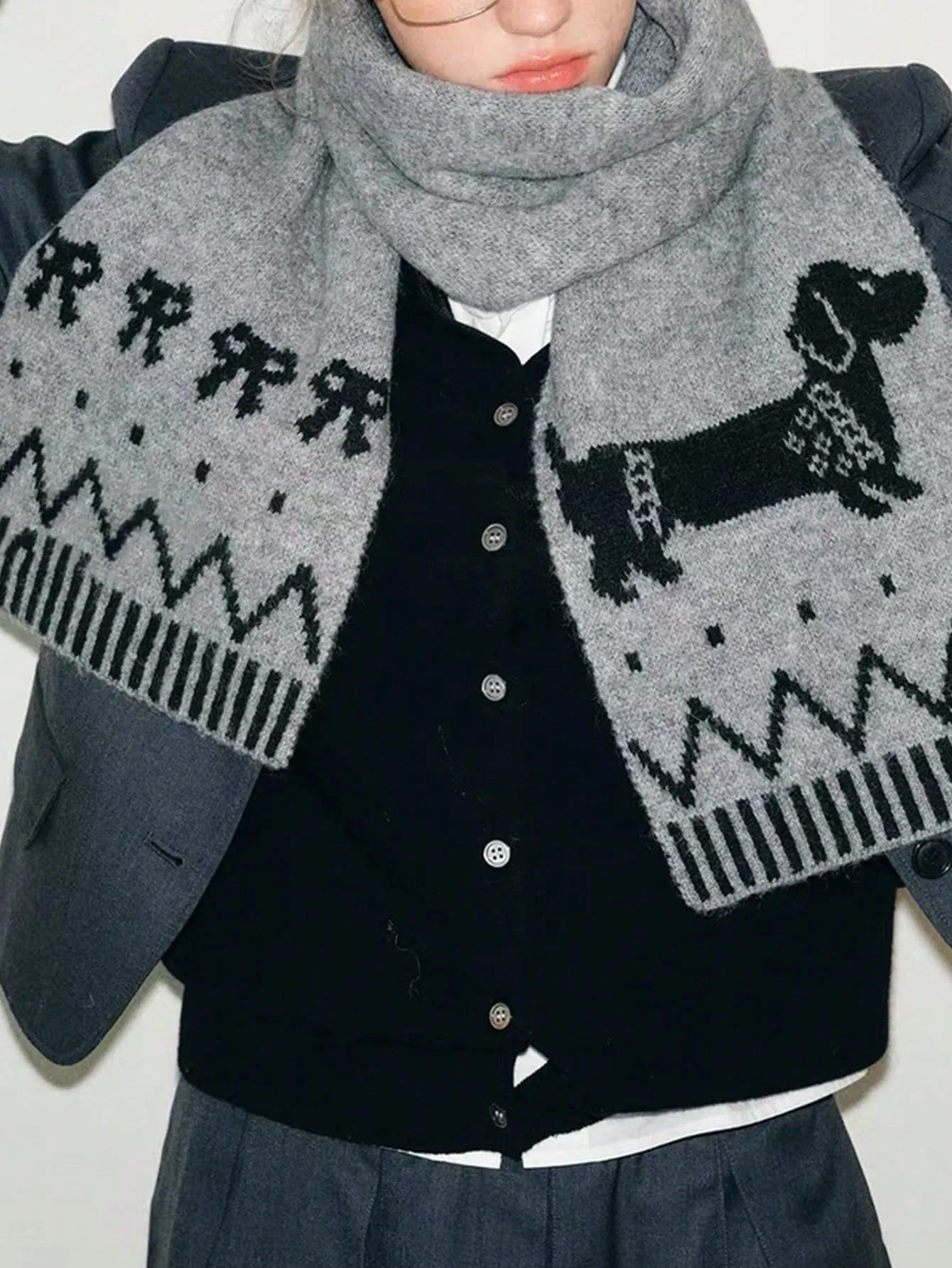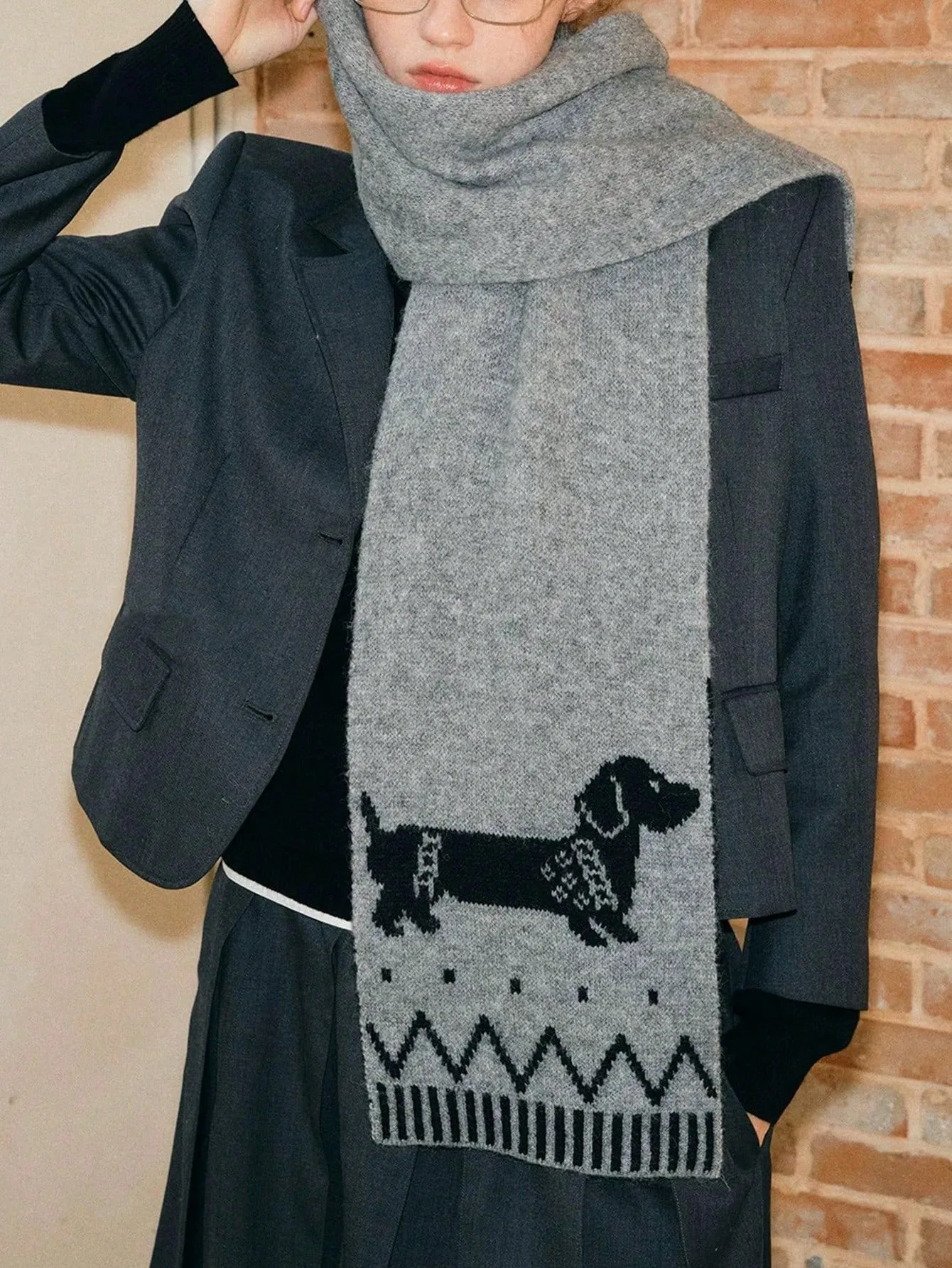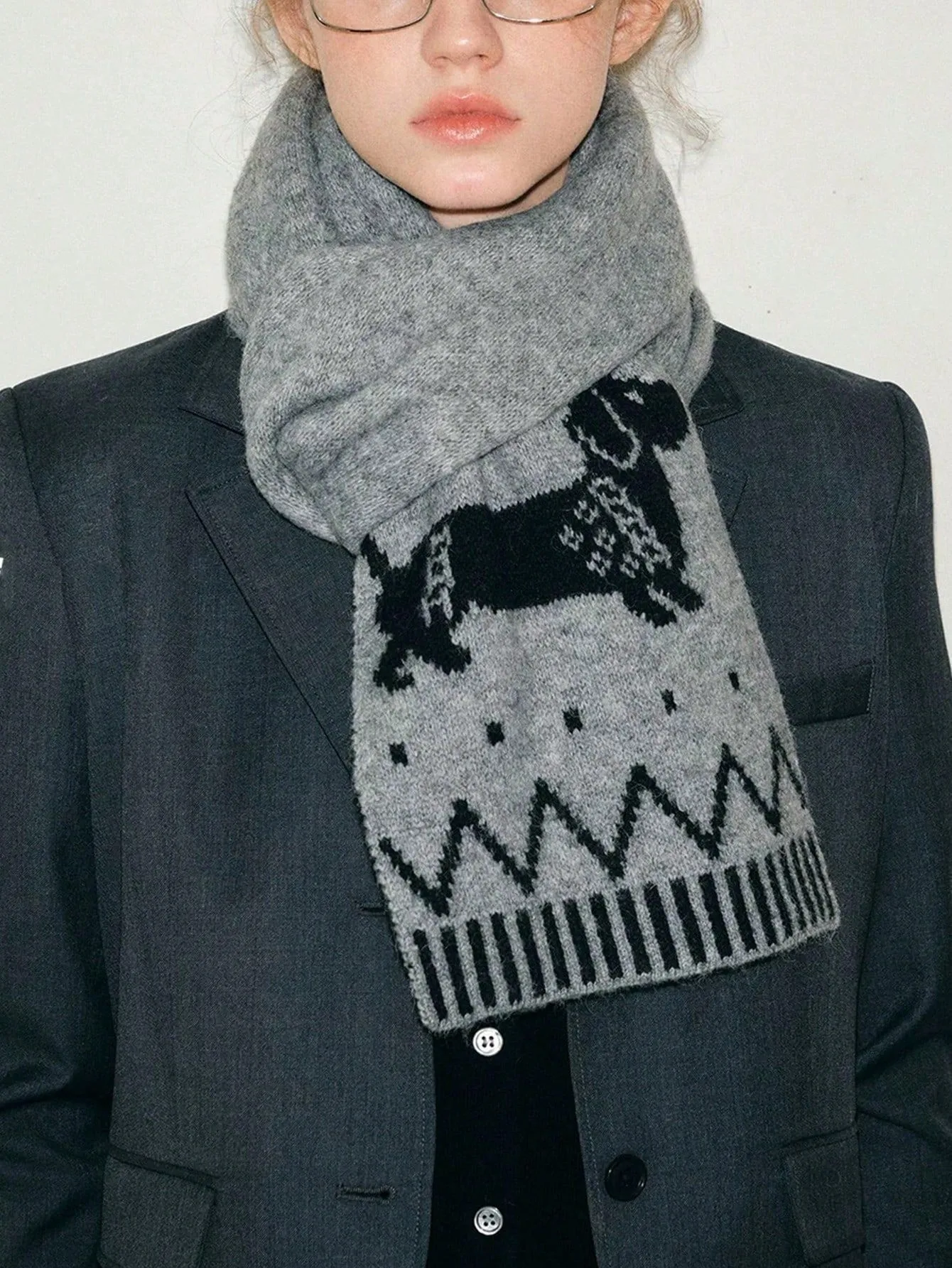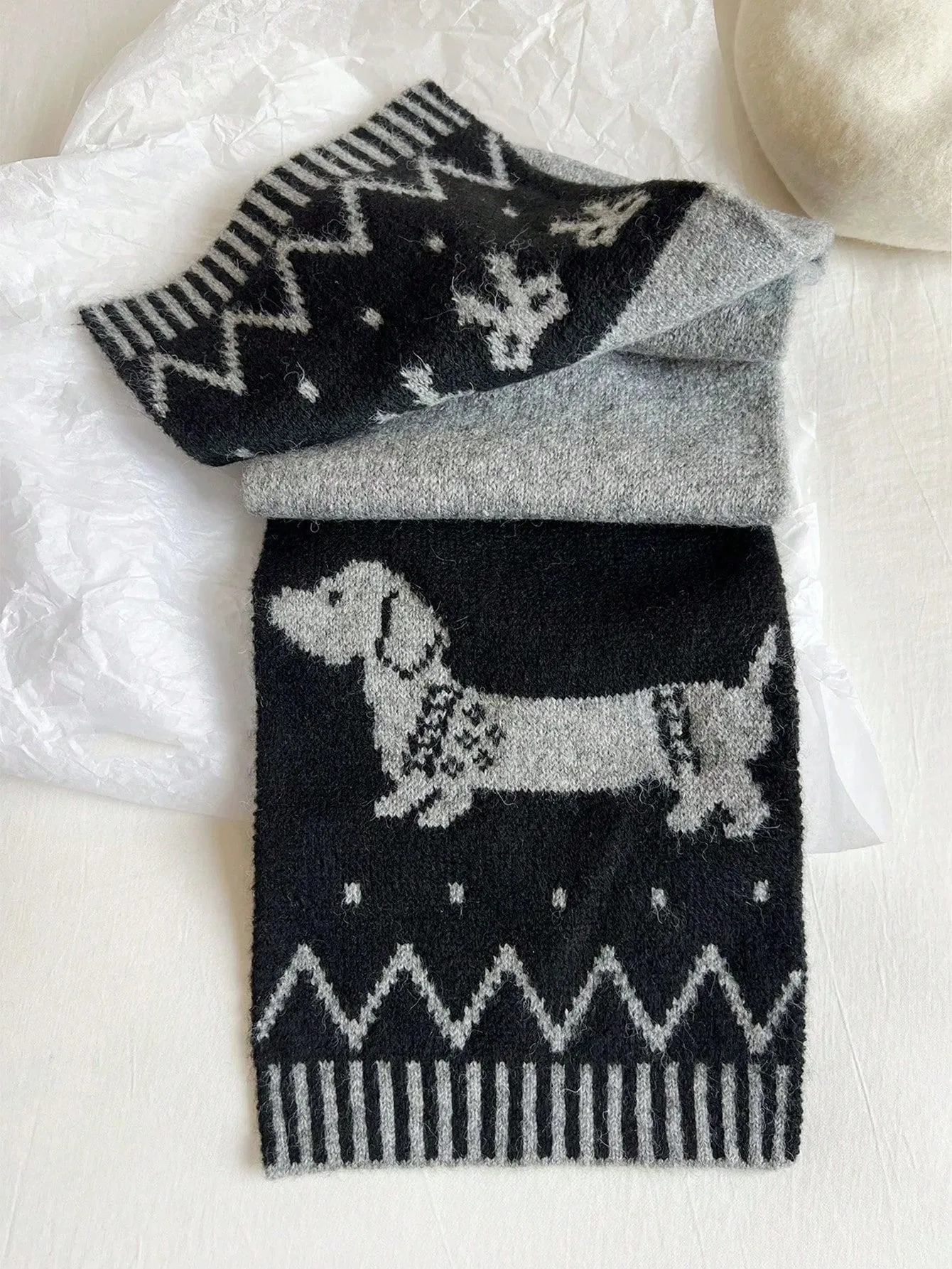 Double-sided Woven Puppy Cute Cartoon Thermal Scarf