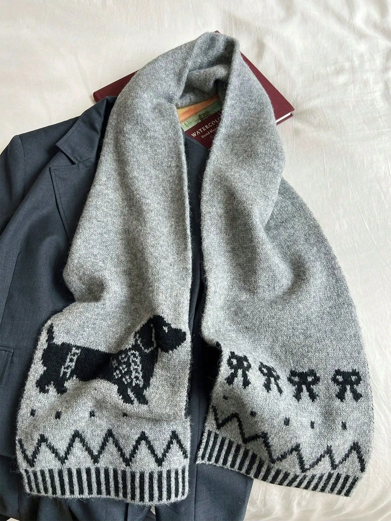 Double-sided Woven Puppy Cute Cartoon Thermal Scarf