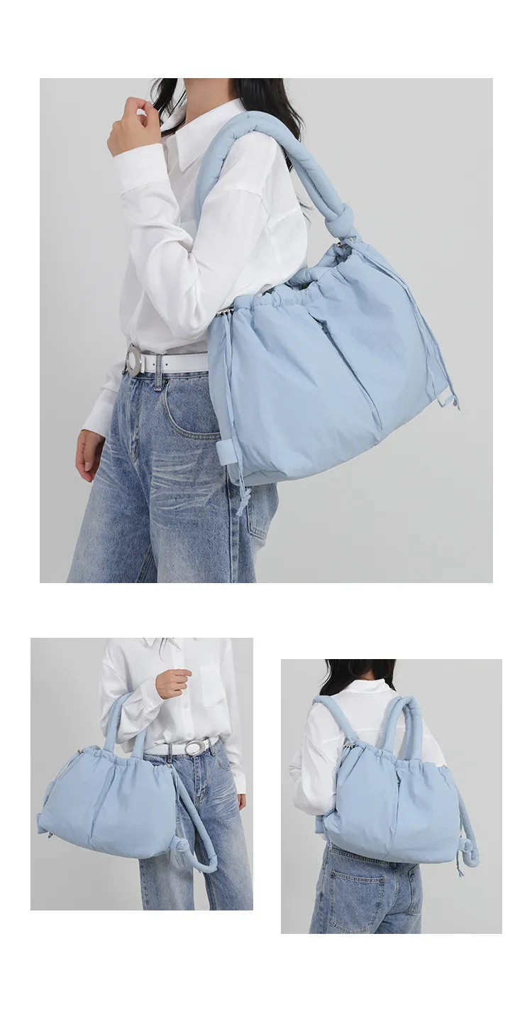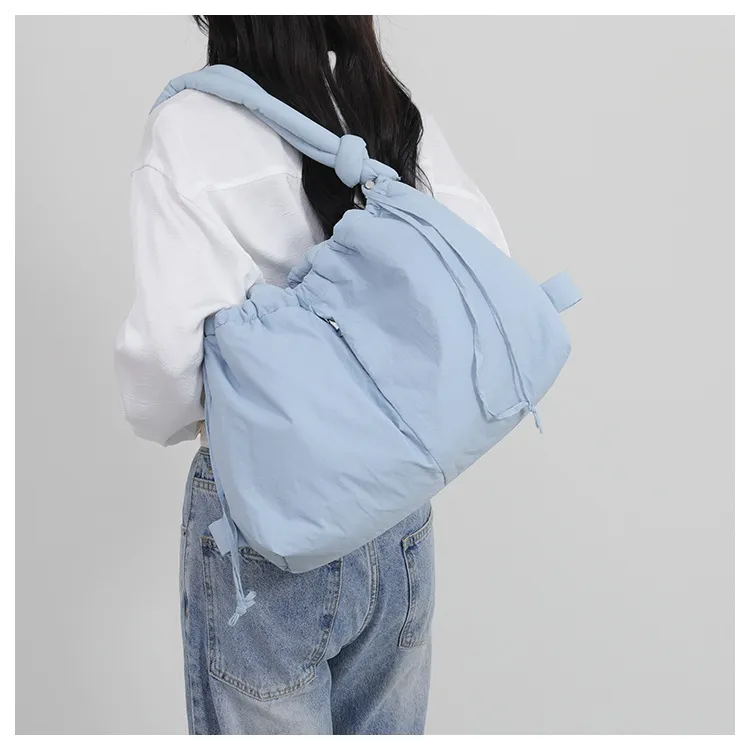 This large-capacity shoulder bag features multiple compartments and pockets to help keep you organized. The adjustable shoulder strap ensures that you can carry it comfortably whether you're using it as a crossbody or a shoulder bag. Its sturdy construction and high-quality zippers ensure long-lasting use, while the down cotton finish adds a soft touch, perfect for everyday wear. Its lightweight nature makes it an ideal choice for women who prefer convenience without compromising on style.