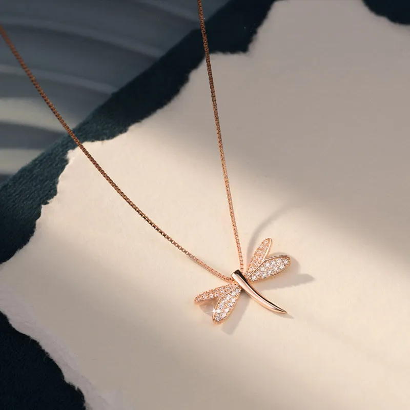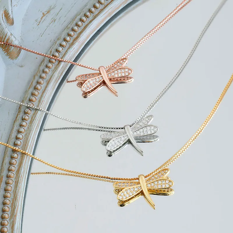 Color: dragonfly necklace (copper plated platinum), dragonfly necklace (copper plated gold), dragonfly necklace (copper plated rose gold)