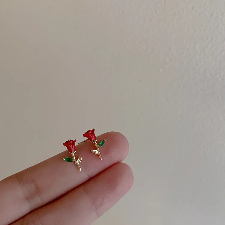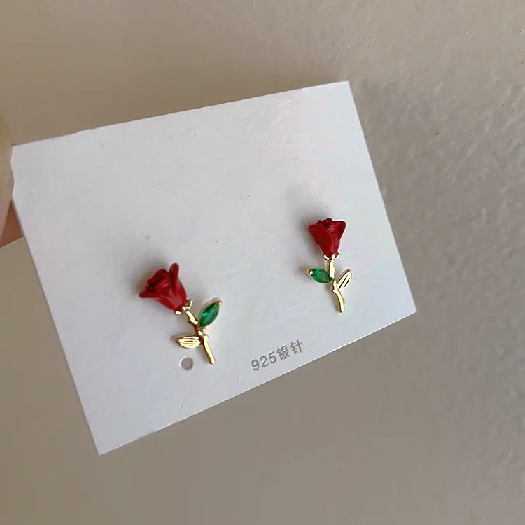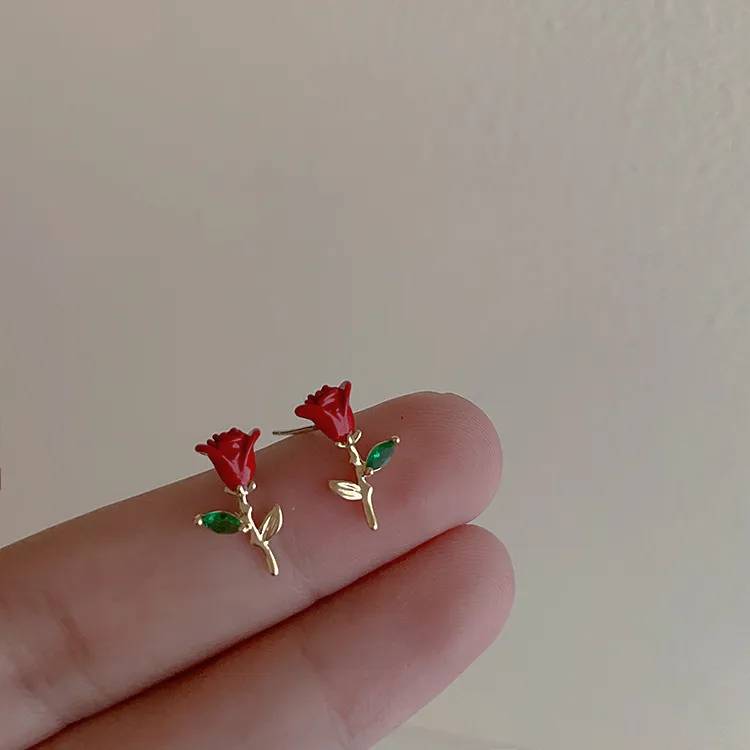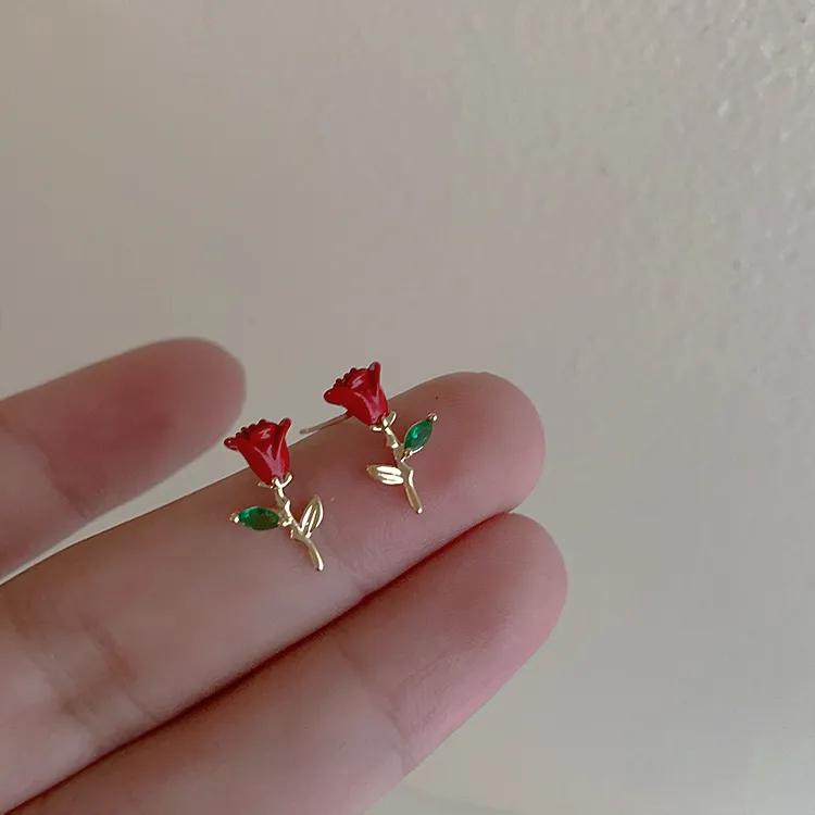 Drop Oil Zircon Metal Rose Stud Earrings