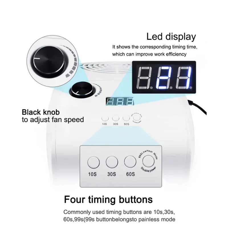 - Functions: Nail dryer, vacuum dust collector, and LED light.