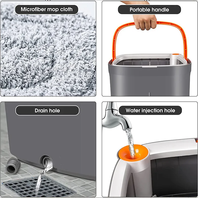 The Dual Compartment Mop is an advanced floor cleaning system engineered to improve hygiene, efficiency, and ease of use by separating clean water from dirty water during the mopping process. Unlike conventional mops and buckets that reuse the same contaminated water, this innovative design features two clearly defined compartments: one for fresh cleaning solution and one for collected dirty water. This ensures that every pass of the mop uses clean water, resulting in visibly cleaner floors and better sanitation.