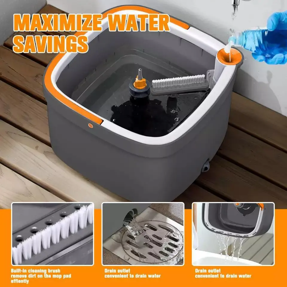 - MESS FREE – The mop & bucket has a built-in brush to clean & scrub the mop pads with each spin