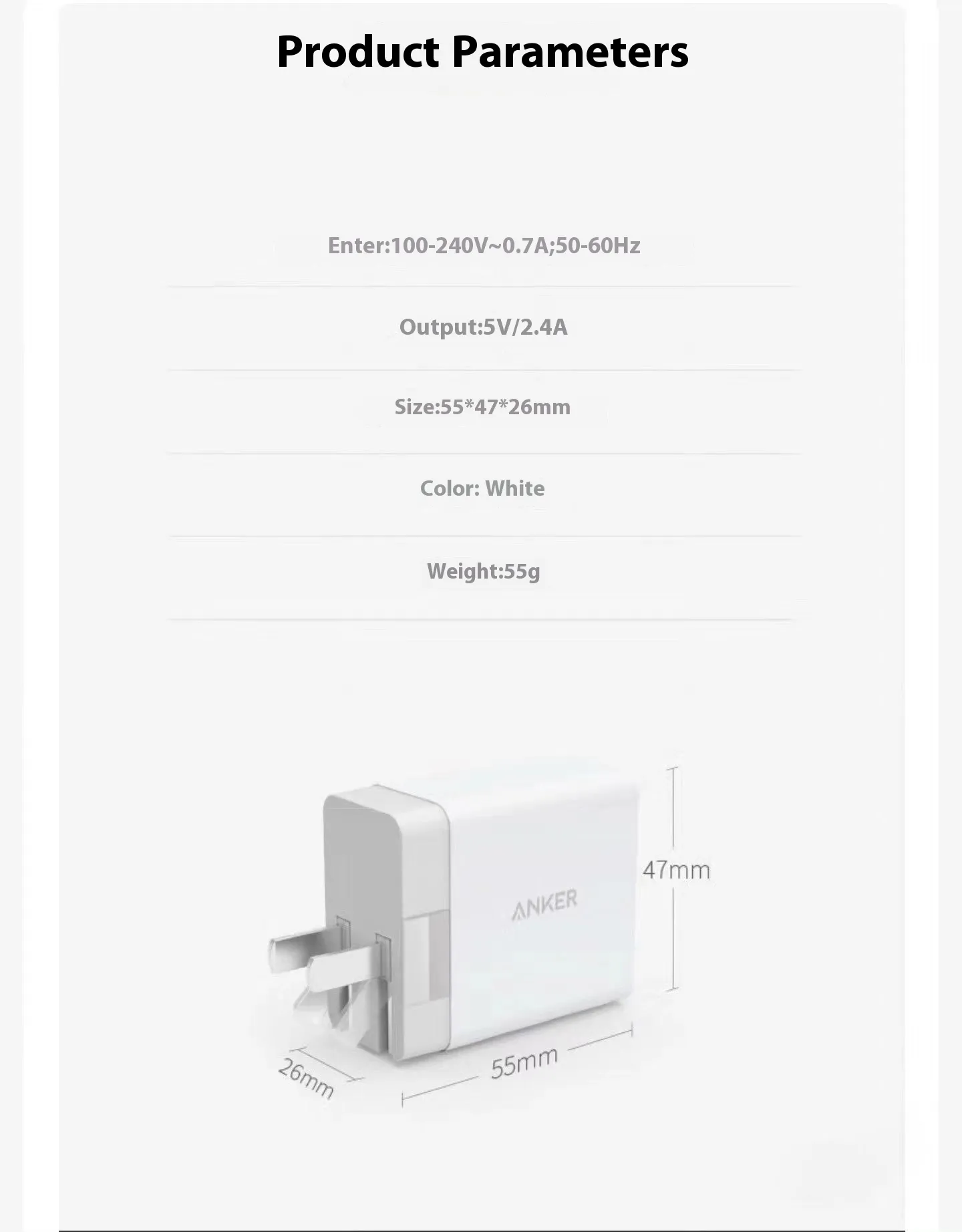 The Dual-Port USB 12W Fast Charging Head is designed for New Zealand users who want a high-speed, reliable charger for their Android devices. This compact charger provides two USB ports, allowing you to charge multiple devices simultaneously, while the single port supports up to 24A output for ultra-fast charging.