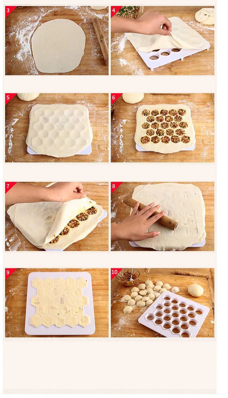 "No more struggling to fold dumplings by hand! This mold makes perfectly shaped dumplings in seconds."