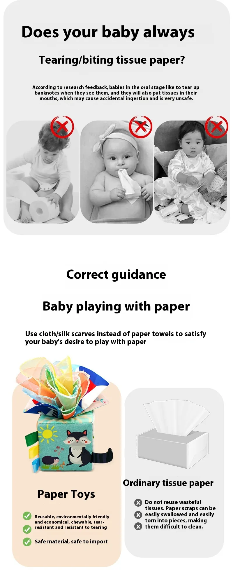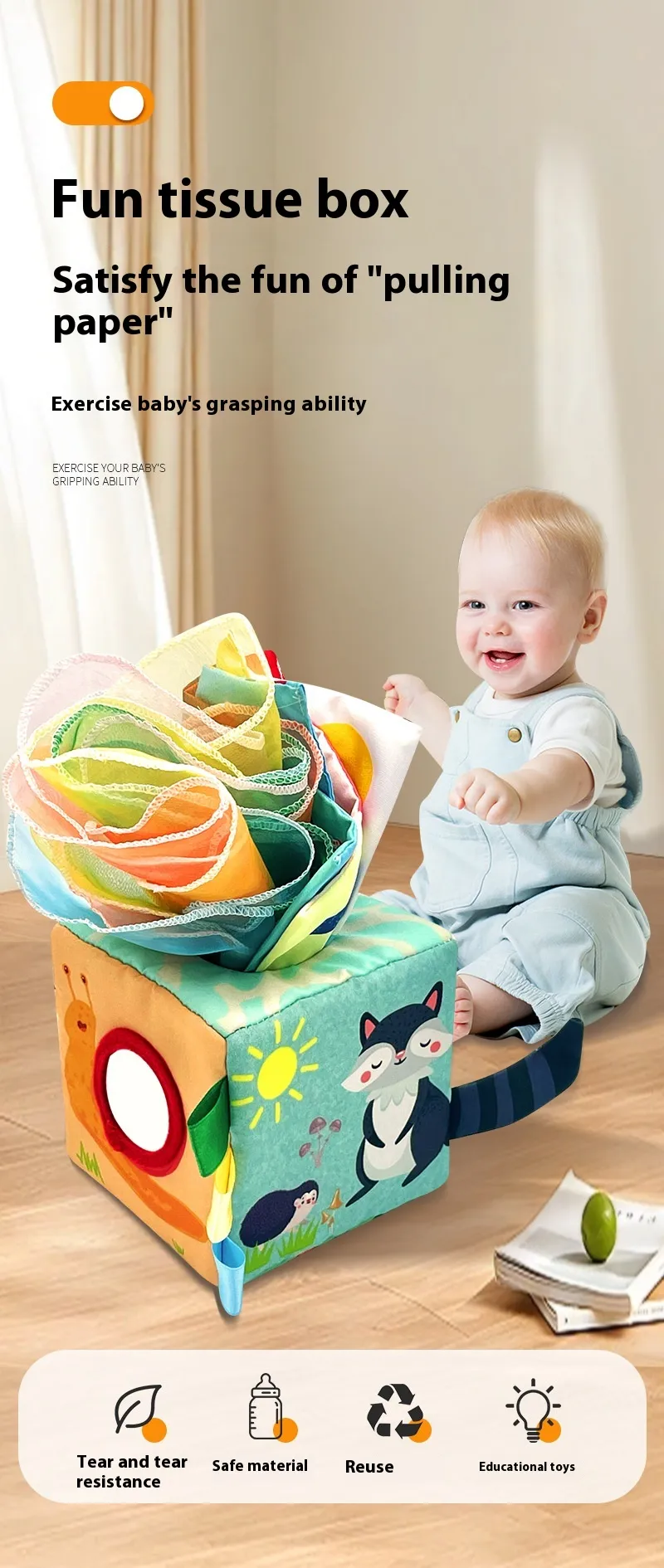 Safe and Durable: With tear-proof tissues and non-toxic materials, this toy is designed to be both safe and long-lasting,
