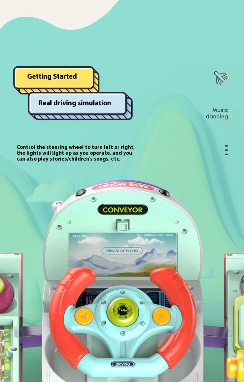 Early Education Transformation Machine Lighting Music Multi-mode Simulation Driving Children's Fun Coin Bank