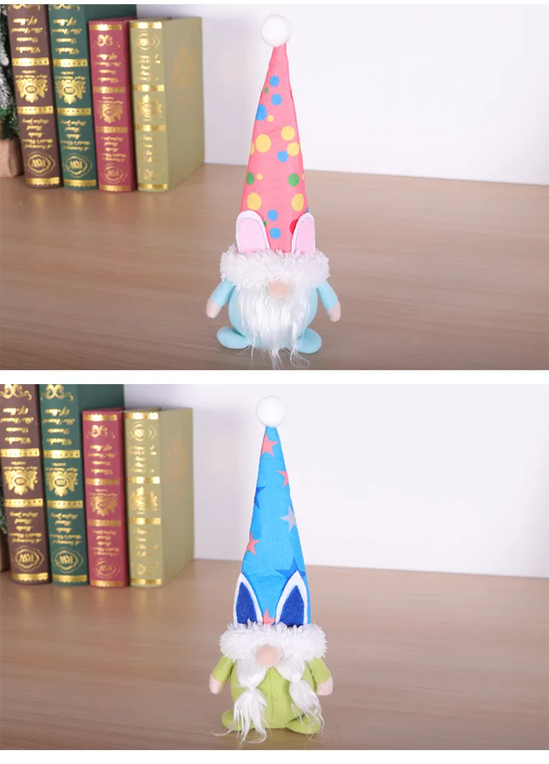 The Easter Decorative Creative Faceless Standing Posture Pointed Hat Rabbit Doll Ornaments are the perfect way to bring charm and whimsy to your Easter decorations. With their unique faceless design, playful pointed hats, and standing posture, these rabbit doll ornaments add a touch of creativity and fun to any space. Perfect for tables, mantels, or as part of your Easter display, these delightful dolls create a festive atmosphere that will captivate guests and family alike. Whether you're decorating for an Easter party, a spring gathering, or just adding a little seasonal cheer to your home, these rabbit dolls are the perfect addition to your décor collection.