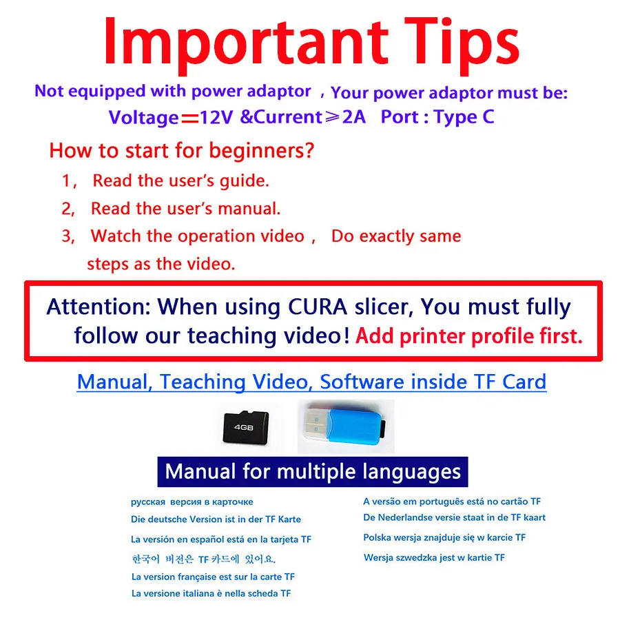The printer operates via a TF card, simplifying the printing process. Users can easily load their print files and start printing without the need for complex setups or software installations.