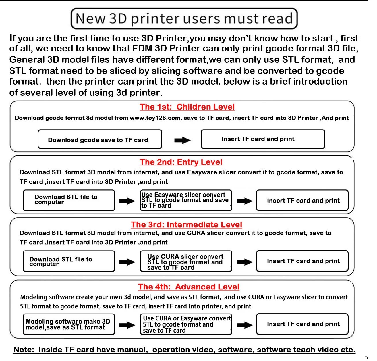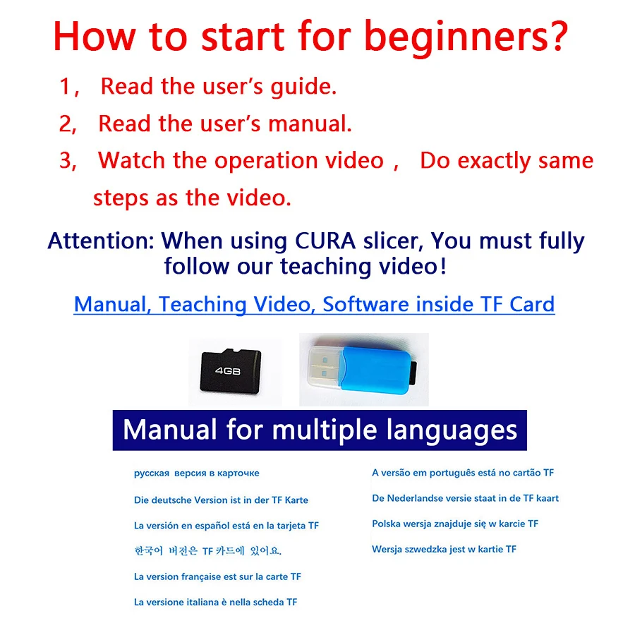 - Free software , Manual, Teach video inside TF card.