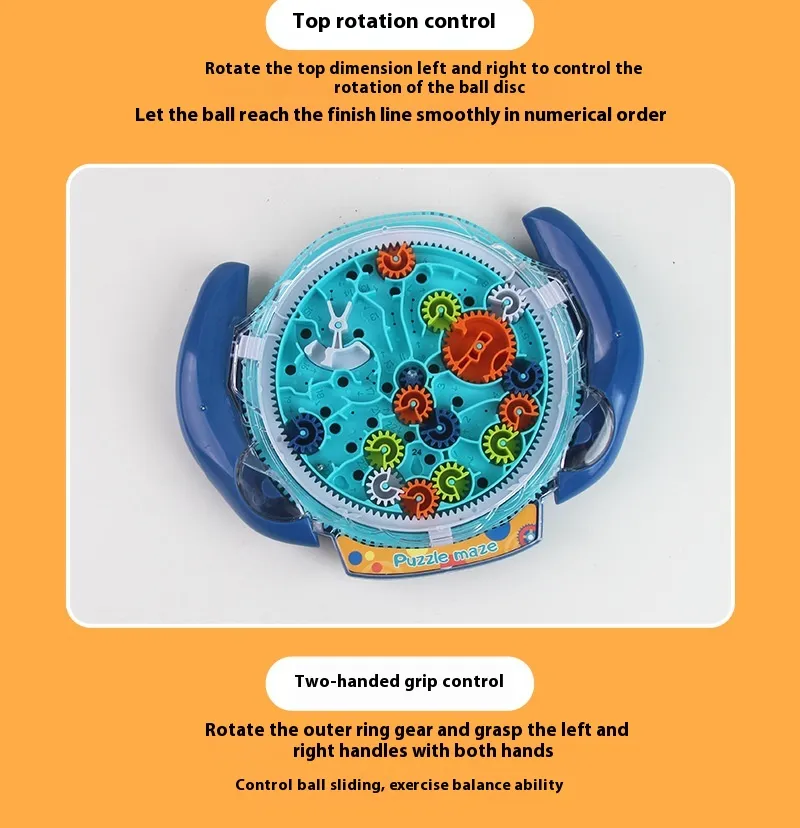 The Educational Gear Maze Entrance Intellectual Ball Concentration Training Toy is a captivating handheld puzzle designed to enhance children's cognitive abilities, fine motor skills, and concentration. This interactive toy features a 3D maze embedded within a transparent sphere, where players guide a small ball through intricate pathways using tilting and rotating motions. As children navigate the maze, they develop problem-solving skills, spatial awareness, and patience, all while enjoying a fun and engaging activity.​
