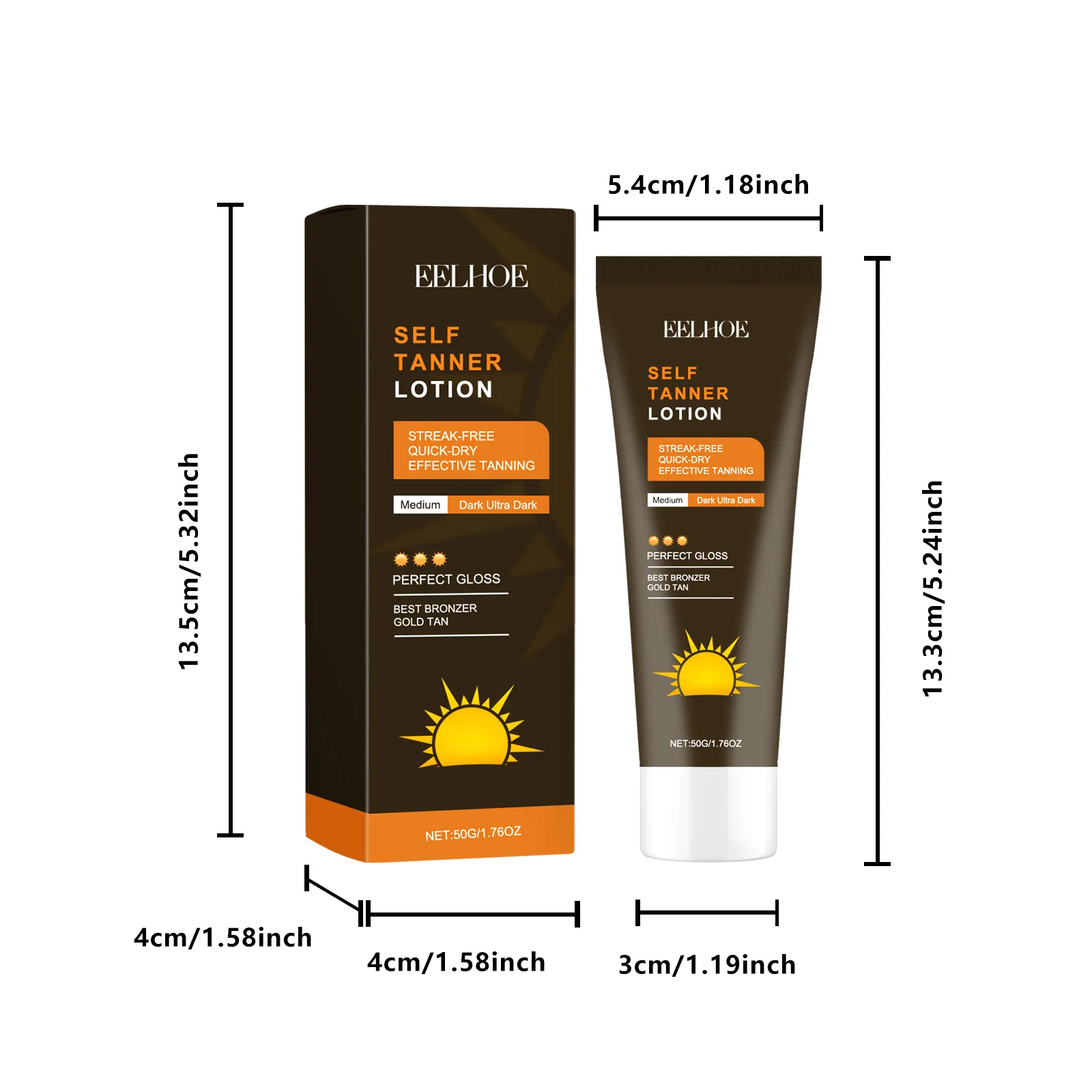 The EELHOE Self Tanner Lotion gradually builds a bronzed tint through a skin‑safe tanning agent. As it absorbs: