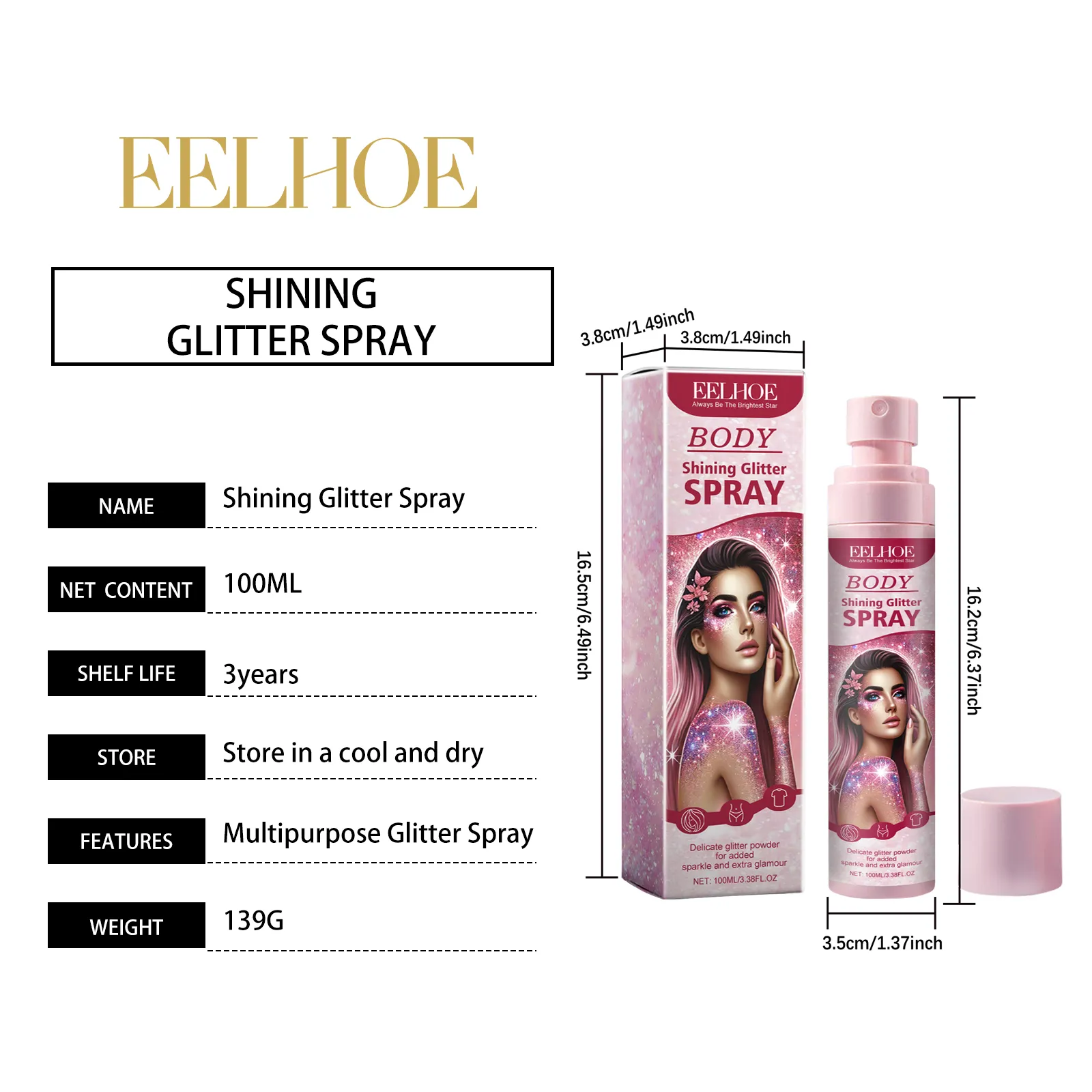 Eelhoe glitter spray, stage makeup glitter spray, facial highlighter spray, clavicle highlighter, natural brightening spray, long-lasting highlighter, glitter makeup spray, sculpting highlighter, dewy glow spray, sparkling highlighter spray