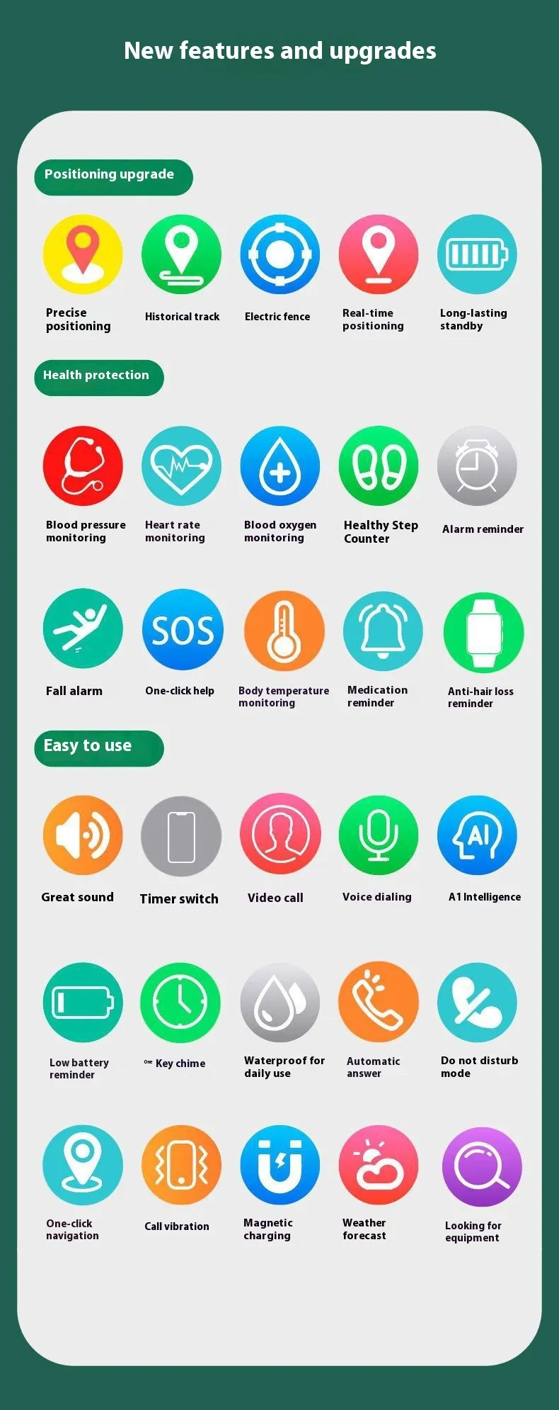 The Elderly 4G All Netcom Smart Positioning Anti-Lost Watch is an essential tool for those looking to provide better care for their elderly loved ones. With its powerful GPS tracking, 4G connectivity, anti-lost functions, and elderly-friendly interface, it provides both safety and peace of mind for caregivers. In New Zealand, where outdoor activities and independence are valued, this smart watch ensures that seniors can live their lives freely while staying protected and connected.