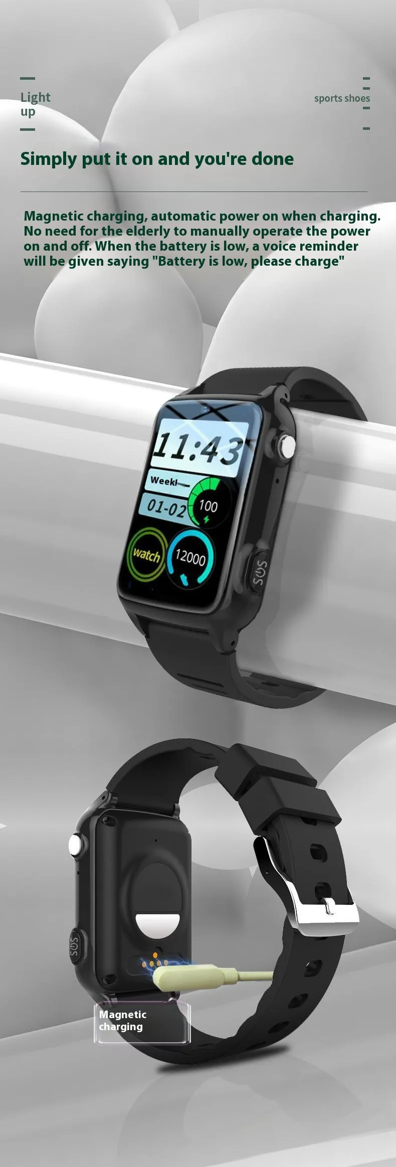 The Elderly 4G All Netcom Smart Positioning Anti-Lost Watch is a thoughtfully designed device that combines cutting-edge technology with user-friendly features to ensure the safety, security, and well-being of elderly loved ones. Whether you’re caring for a senior family member or looking for a reliable solution to monitor their health and location, this smart watch offers a comprehensive solution with 4G connectivity, real-time positioning, and anti-lost features. With its easy-to-use interface and advanced safety features, it provides peace of mind to both the wearer and their caregivers.