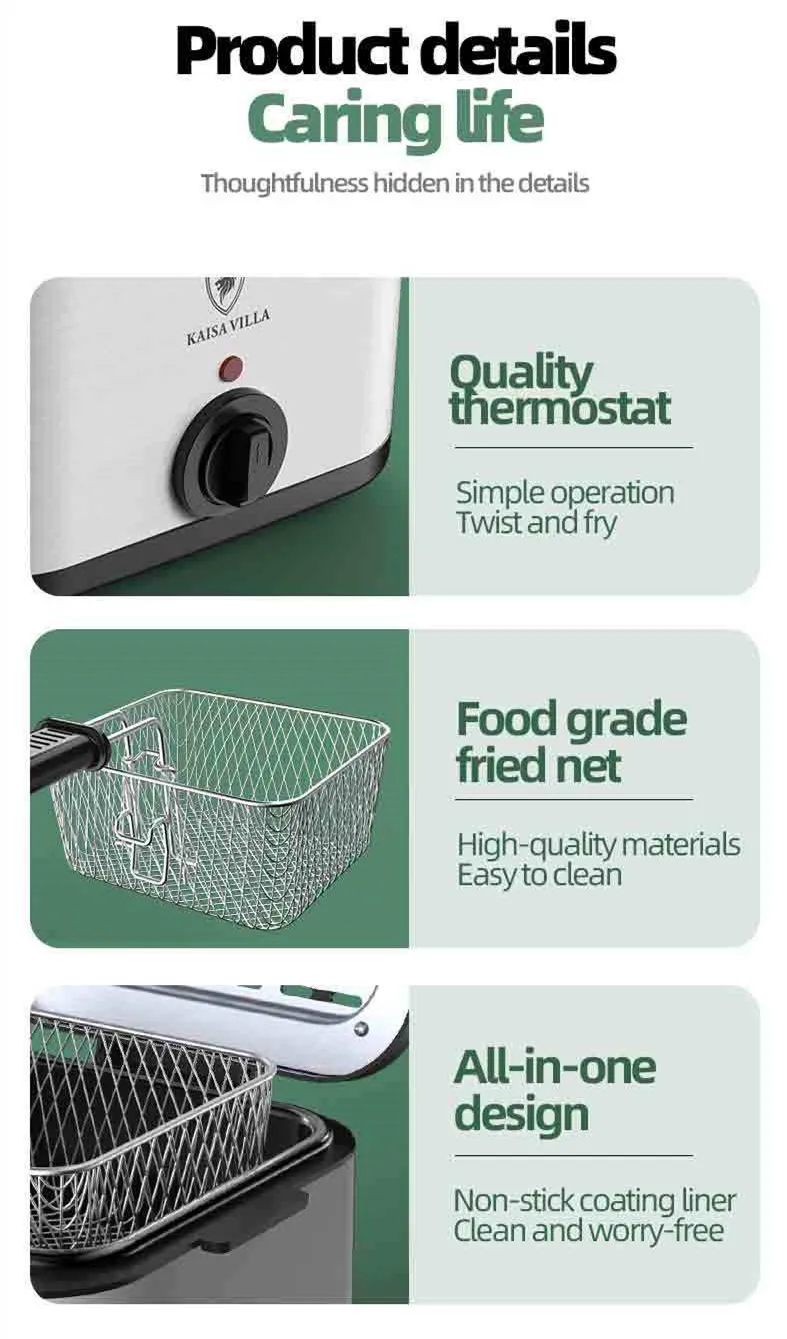 2.5L deep fryer, stainless steel + plastic body, detachable fried blue, easy to clean, suitable for home-made French fries, donuts, fried