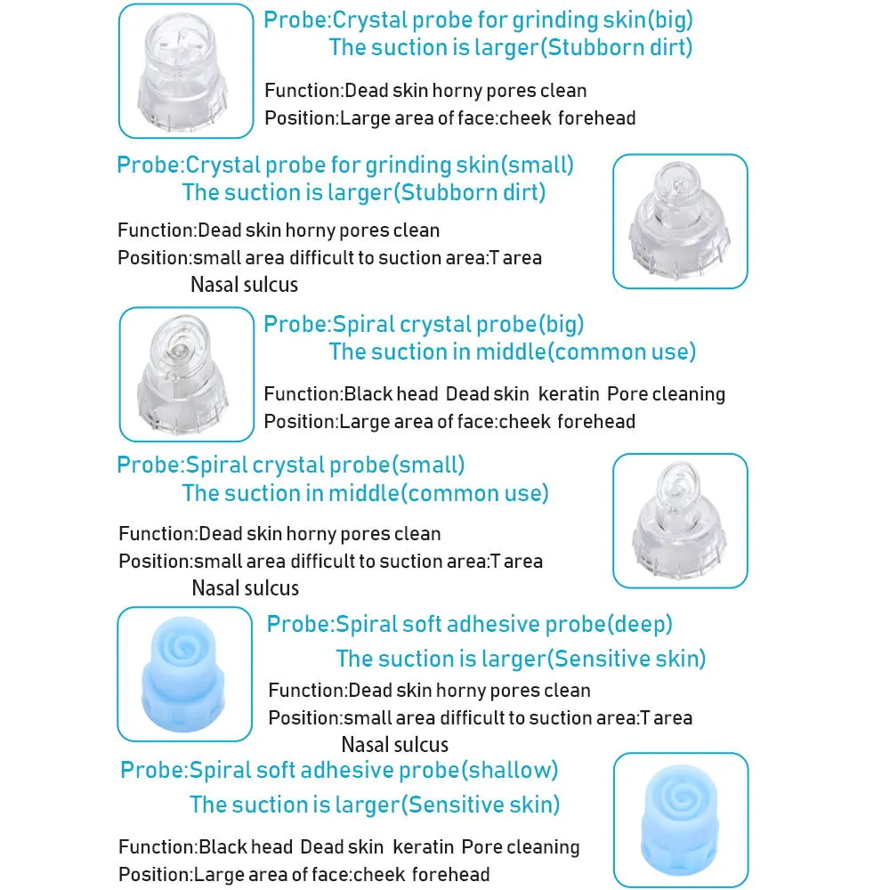 Spiral crystal head (large): Moderate suction, remove blackheads, dead skin, clean pores, suitable for large areas of the face (such as
