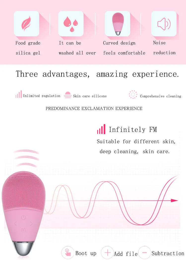 Advanced Sonic Technology: The electric facial cleansing brush uses sonic vibrations to deeply cleanse the skin, removing