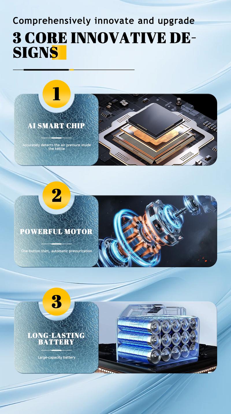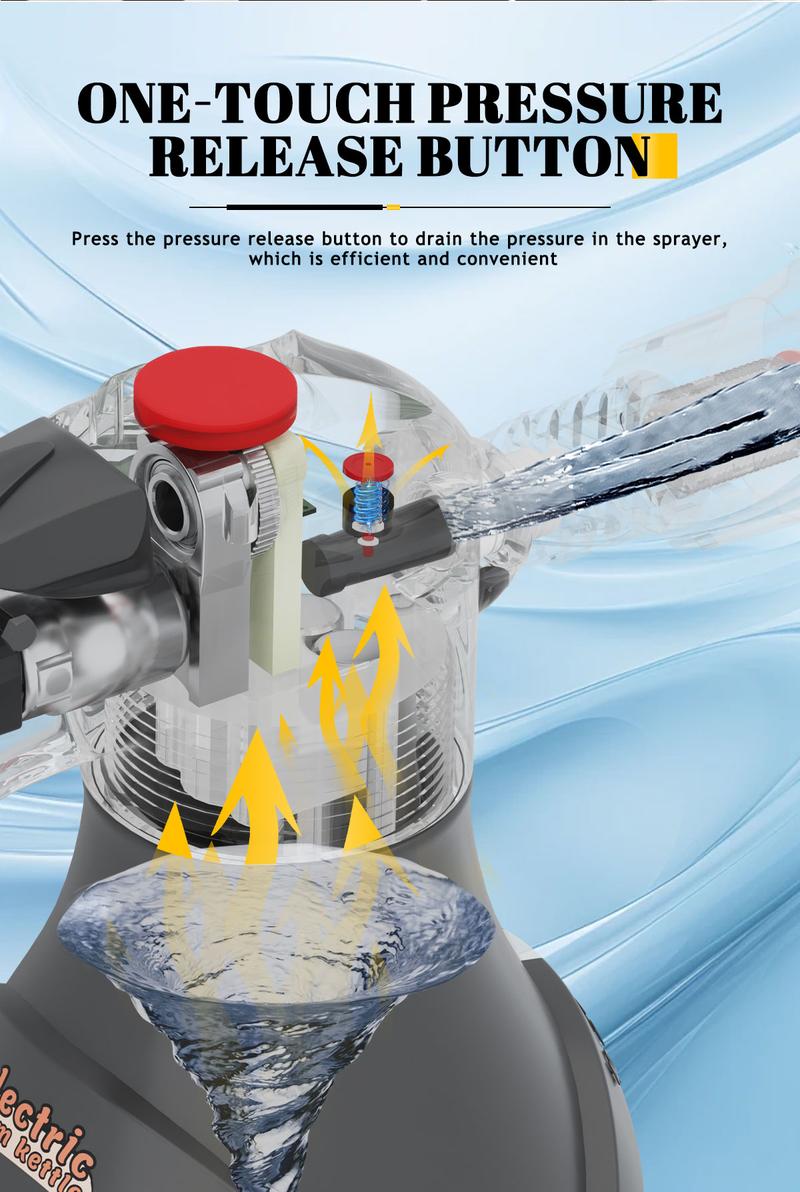 Advanced safety features: upgraded pressure reliefvalve design and intelligent pot pressure control toensure a worry-free car washing experienceExcellent performance: Made of high-qualitymaterials, with excellent toughness and durability, safeand environmentally friendly.
