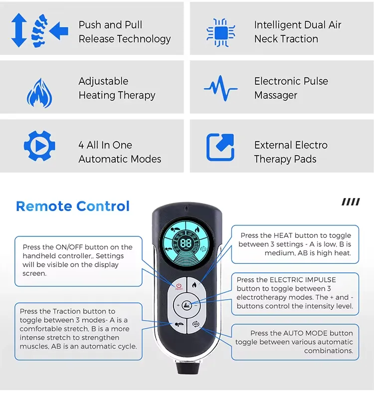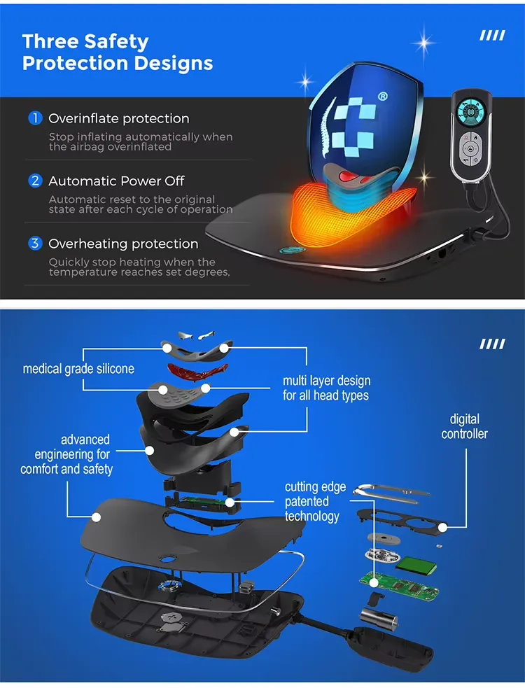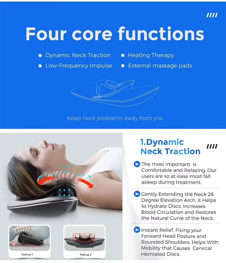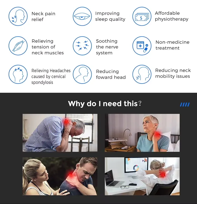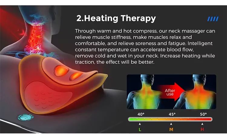 The combination of heat and traction helps to relax tight muscles, reduce inflammation, and alleviate pain in the neck and shoulder areas.